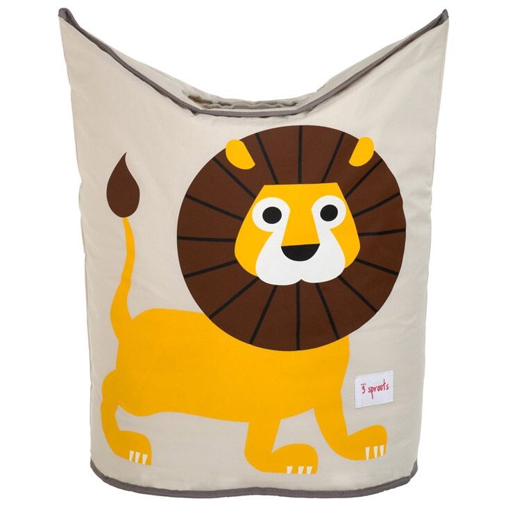 Sehen Sie auch das Kinderzimmer vor lauter Wäsche kaum noch? Dann ist der 3 Sprouts Wäschekorb Löwe die perfekte Lösung. Klappt man die zwei Tragegriffe runter, ergibt sich eine runde Öffnung, um die Wäsche einzuwerfen, die somit stilvoll aus dem Blickfeld verschwindet. Der Netzboden sorgt für ausreichend Luftzirkulation. Ist der Wäschekorb voll, lässt er sich ganz bequem davon tragen. Natürlich kann der Wäschekorb mit dem süssen Löwen Motiv auch als Aufbewahrungskorb für Spielzeug oder Kuscheltiere benutzt werden. Wird er nicht benötigt ist er platzsparend zusammenfaltbar. Komplett abwischbar.