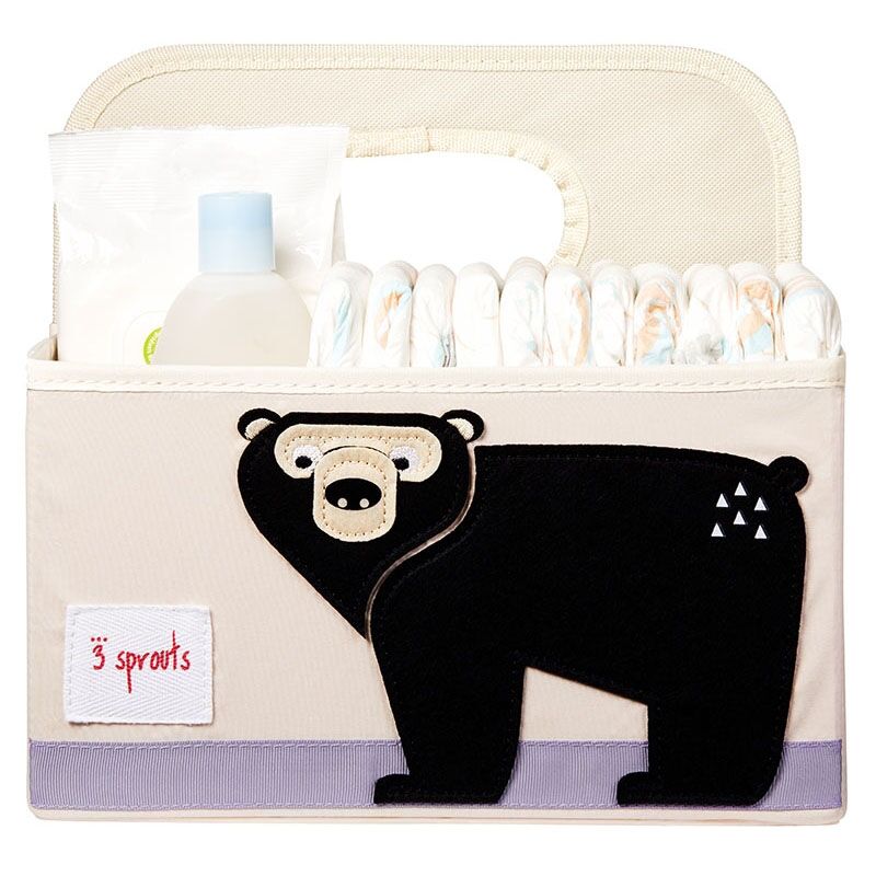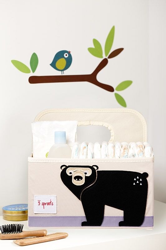 Mit der 3 sprouts Windelutensilo Bär haben unschöne Windelberge am Wickeltisch ein Ende. Alles was am Wickeltisch gebraucht wird findet seinen Platz. Oben offen, sind alle Sachen praktisch mit einer Hand zu greifbar. Der Tragegriff erlaubt auch kurzfristige und schnelle Ortswechsel ohne, dass etwas vergessen wird. Zusätzlich sieht das Windelutensilo mit dem süssen Bär Motiv auch noch noch sehr dekorativ aus.