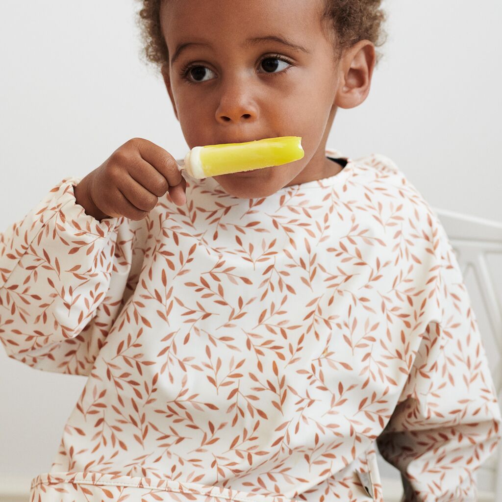 Das hübsche und praktische Cam Cam Ärmellätzchen mit langen Ärmeln und Auffangtasche ist ein alltägliches Must-Have für die etwas chaotischen Mahlzeiten.