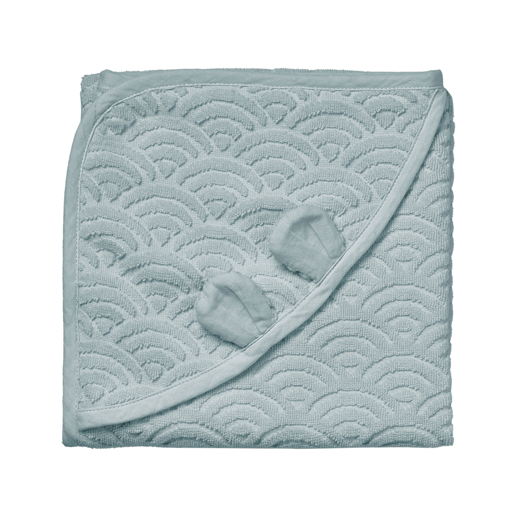Mit seiner kleinen, niedlichen Bärenohren-Kapuze, eignet sich das Handtuch perfekt zum Kuscheln nach einem warmen Bad. Das luftige Wellenmuster lässt das Kputzenhaüdtuch schnell trocknen.
