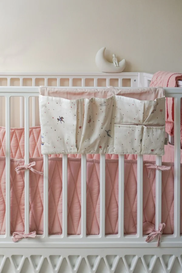 - Praktisch und stilvoll: Ideal, um Schnuller, Bücher oder Kuscheltücher griffbereit am Bett zu verstauen.