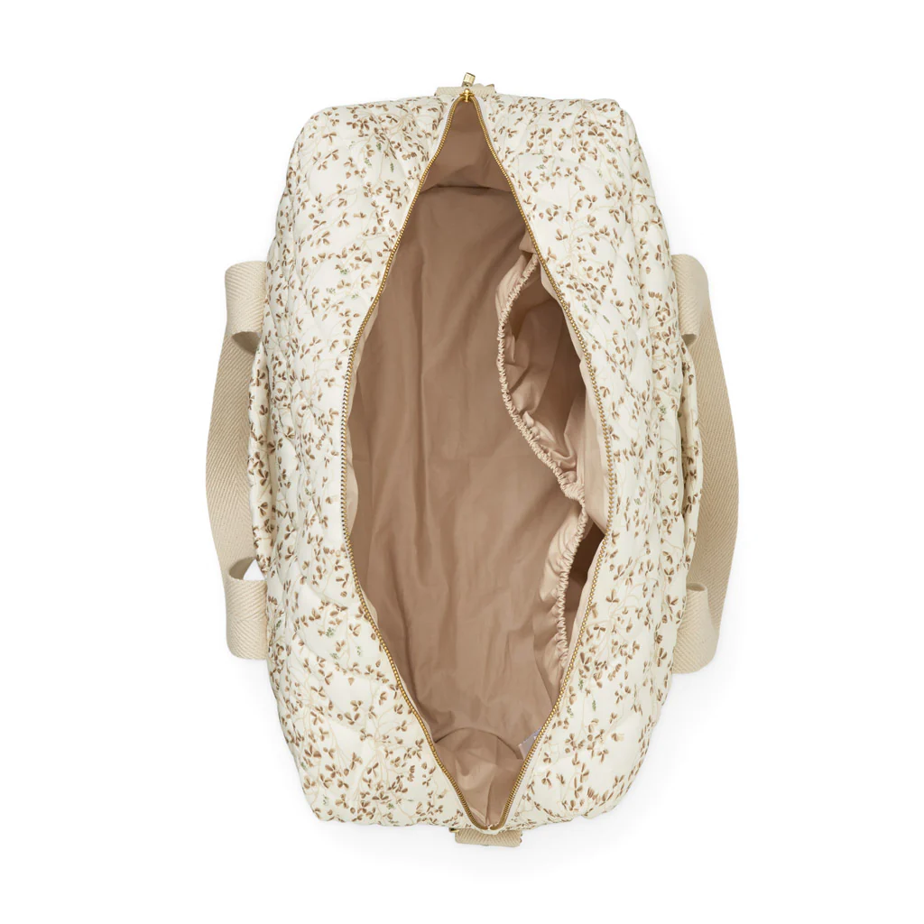Die Wickeltasche hat tolle Details wie YKK-Reißverschlüsse aus Messing, einen verstellbaren Schultergurt, der perfekt um den Kinderwagengriff passt, und viele Taschen innen und außen für Trinkflaschen, Windeln, Tücher und alle anderen Essentials für unterwegs.