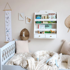 Das Bücherregal ist FSC-zertifiziert, aus verantwortungsbewusstem Holz hergestellt und mit kindersicherer VOC-freier Farbe lackiert. Erhältlich in Weiß und klassischem Grau.