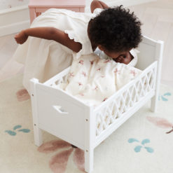 Hübsche Cam Cam Puppenbettwäsche „Windflower Creme“ aus 100% GOTS-zertifizierter Bio-Baumwolle. Das Set besteht aus einer Puppendecke und einem Kissen. Kleine Schleifchen sind als extra Detail am unteren Rand angebracht. Die Puppenbettwäsche passt zum Cam Cam Puppenbett. Der Bezug kann mit einem Reissverschluss abgenommen und gewaschen werden.