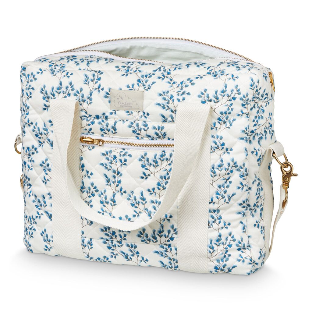 Die populäre und stylische gesteppte Cam Cam Wickeltasche „Fiori“ aus OCS-zertifizierter Bio-Baumwolle. Mit wasserabweisender Beschichtung sowohl innen als auch aussen für extra Schutz und Langlebigkeit. Die Cam Cam Wickeltasche hat stabile Riemen und einen verstellbaren Schulterriemen, welcher perfekt über den Griff des Kinderwagens passt. Die Tasche ist minimalistisch gehalten und dafür gedacht auch lange nach der Wickelzeit in Gebrauch zu bleiben. Sie ist für den täglichen Gebrauch entworfen und sieht nicht aus wie herkömmliche Wickeltaschen. Sie hat tolle Details, wie etwa YKK Messing-Reissverschlüsse und praktische Elastiktaschen zum Organisieren in der Tasche. Es ist ein Fach für eine Trinkflasche sowie innen als auch außen weiteren Fächer mit Reissverschlüssen vorhanden, um kleinere Dinge zu organisieren und zu verstauen.