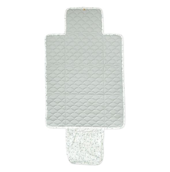 Hübsche und praktische Cam Cam Copenhagen Wickelunterlage mit schönem, gestepptem Wellenmuster. Die Unterlage ist perfekt für alle Wickelsituationen unterwegs. Sie ist ganz einfach mit einer Hand zu kleiner Grösse faltbar und passt damit in jede Wickeltasche. Sie hat eine praktische kleine Tasche, hier passen zum Beispiel eine Windel und ein Musselintuch rein. Die Unterlage ist oberflächenbeschichtet und somit schmutz- und wasserabweisend. Die Wickelunterlage ist wattiert um deinem Baby eine weiche und komfortable Liegefläche zu bieten.