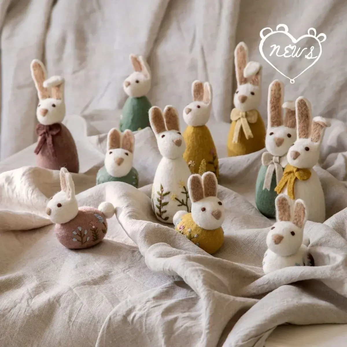 Die liebevoll handgefertigten Gry & Sif Osterhasen bringen die Magie von Ostern direkt zu dir nach Hause. Jeder Hase wird von nepalesischen Kunsthandwerkern aus 100 % neuseeländischer Schurwolle gefertigt. Dank der sorgfältigen Verarbeitung und dem einzigartigen skandinavischen Design eignen sich diese Filzhasen ideal als fröhliche Dekoration für die Osterzeit. Ob auf der Ostertafel, im Osterstrauch oder im Kinderzimmer – die Osterhasen sorgen überall für eine heitere Atmosphäre und sind stets bereit, den Frühling willkommen zu heißen.