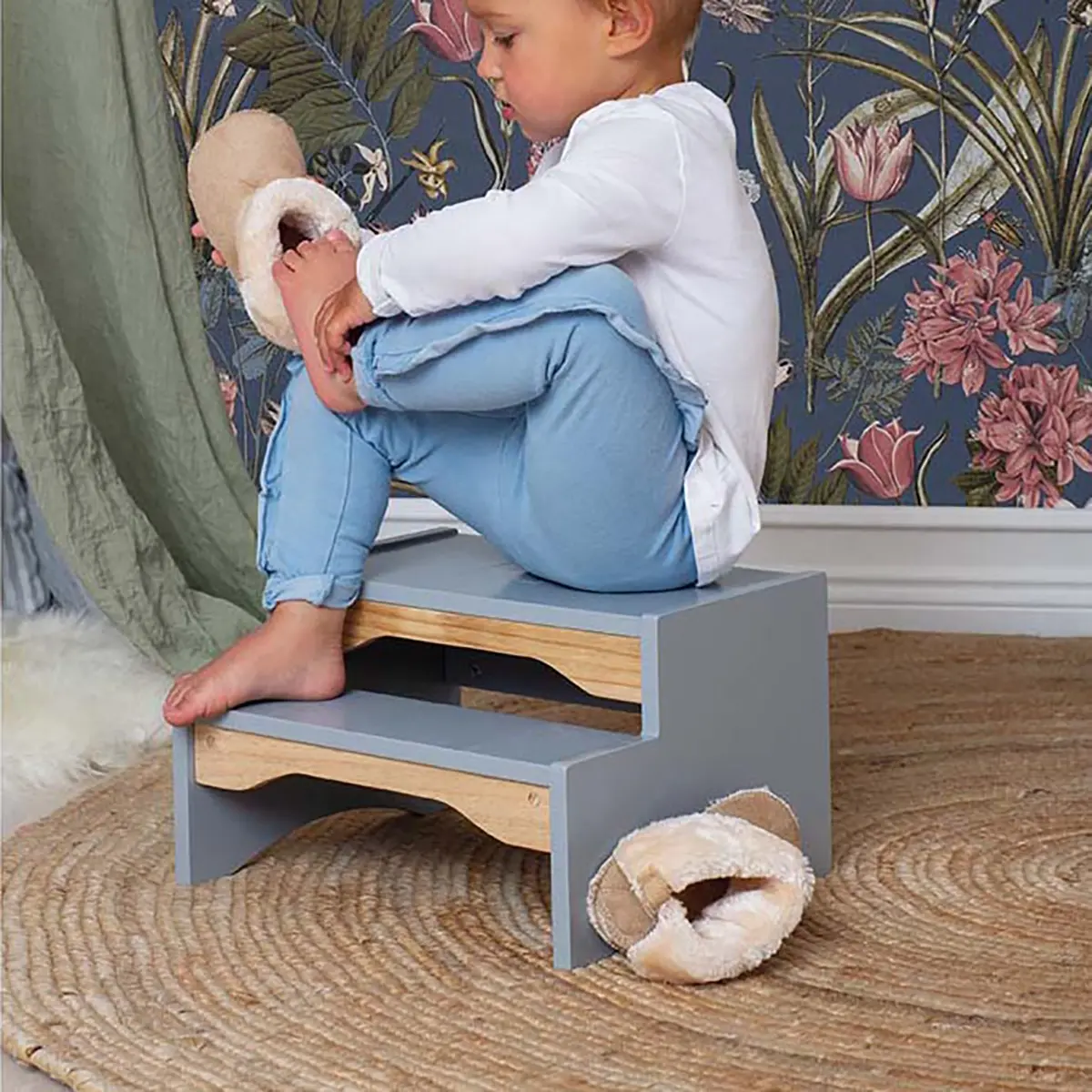 - Design: Der Tritthocker fügt sich nahtlos in jede Raumgestaltung ein und bietet eine attraktive sowie praktische Lösung für alltägliche Herausforderungen im Kinderalltag.