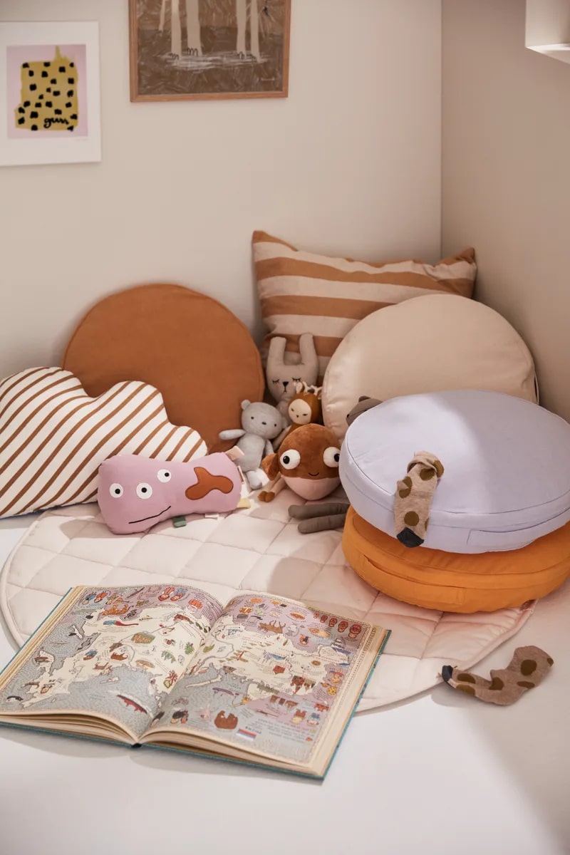 Mit diesem Kissen sind der Fantasie keine Grenzen gesetzt. Es ist ein Zufluchtsort für das Lesen von Büchern, ein geheimer Treffpunkt für beste Freunde oder ein ruhiger Ort für nachmittägliche Träumereien. In der Welt der Kinder wird dieses Kissen zu allem, was sie sich vorstellen können.