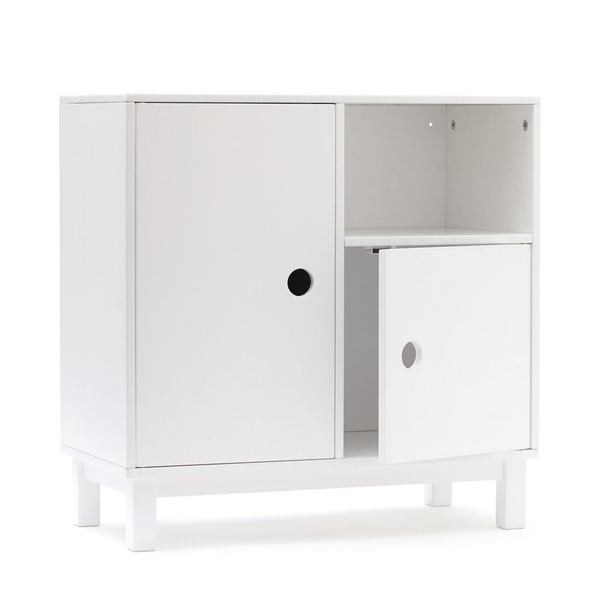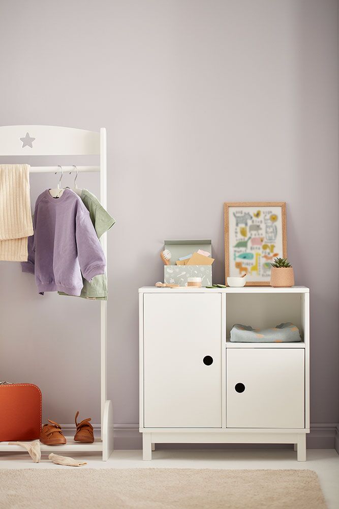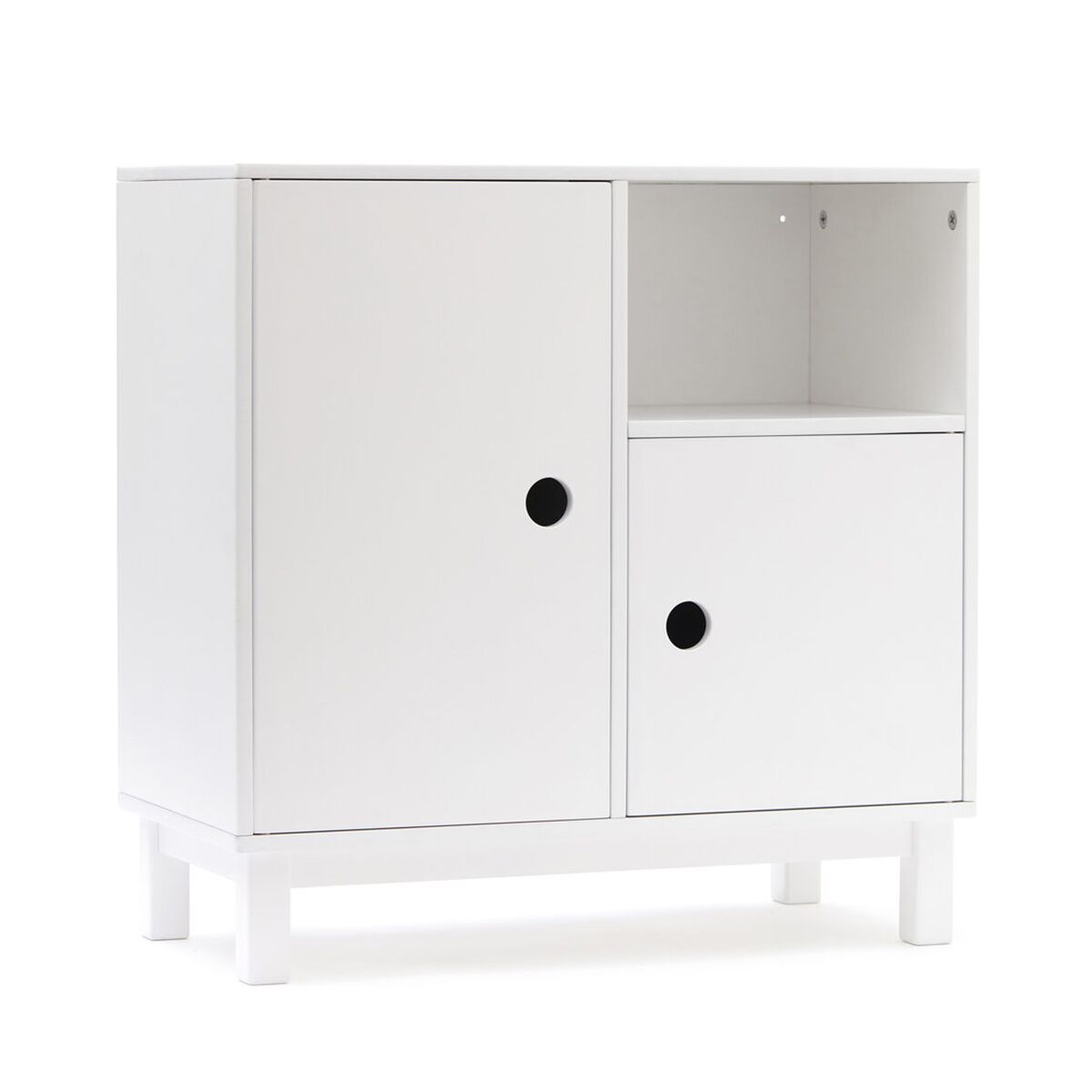 Nach einem Tag voller Spielen kann es etwas chaotisch werden. Aber keine Sorge. Von nun an wird es viel einfacher sein, das Spielzimmer zu auszuräumen und das richtige Spielzeug zu finden. Dies ist ein kleinerer weißer Aufbewahrungsschrank für Kinder aus der Kids Concept Star-Kollektion.