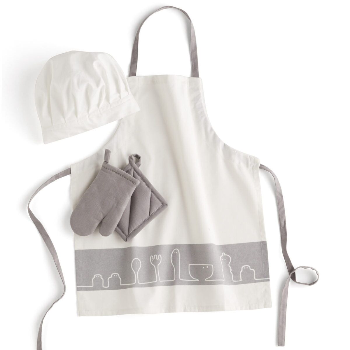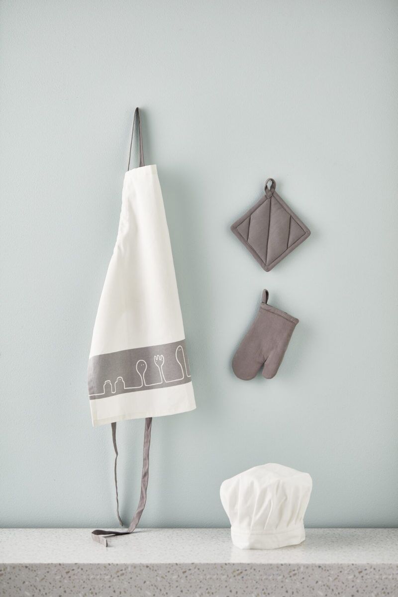 Lang ersehntes Set für die Bistro-Kollektion: Kids Concept Kochschürze und Zubehör aus 100% Baumwolle. Eine praktische Schürze, eine Kochmütze, ein Topflappen und ein Backhandschuh – Kids Concept hat an alles gedacht! Die Schürze ist ideal, um die Kleidung Ihres Babys beim Helfen in der Erwachsenenküche zu schützen! Der Handschuh und der Topflappen sind kommen zum Einsatz, wenn die Kuchen im Spielzeugofen fertig gebacken sind. Die Schürze ist mit einem verspielten Muster mit Herrn Peppar und seinen Freunden auf der Schürze gestaltet.