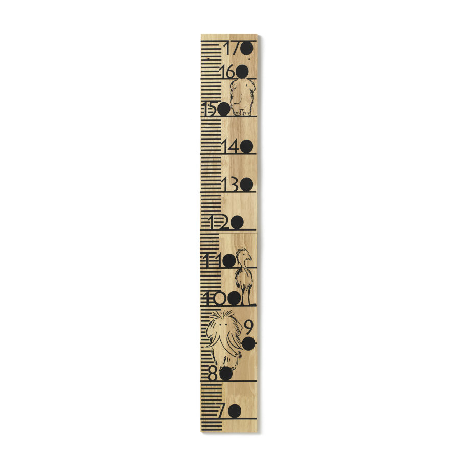 - Tafelfarbenkreise: Die schwarzen Kreise sind nicht nur dekorativ, sondern auch funktional. Dank der Tafelfarbe können besondere Meilensteine, Daten oder kleine Notizen direkt auf der Messlatte verewigt werden.