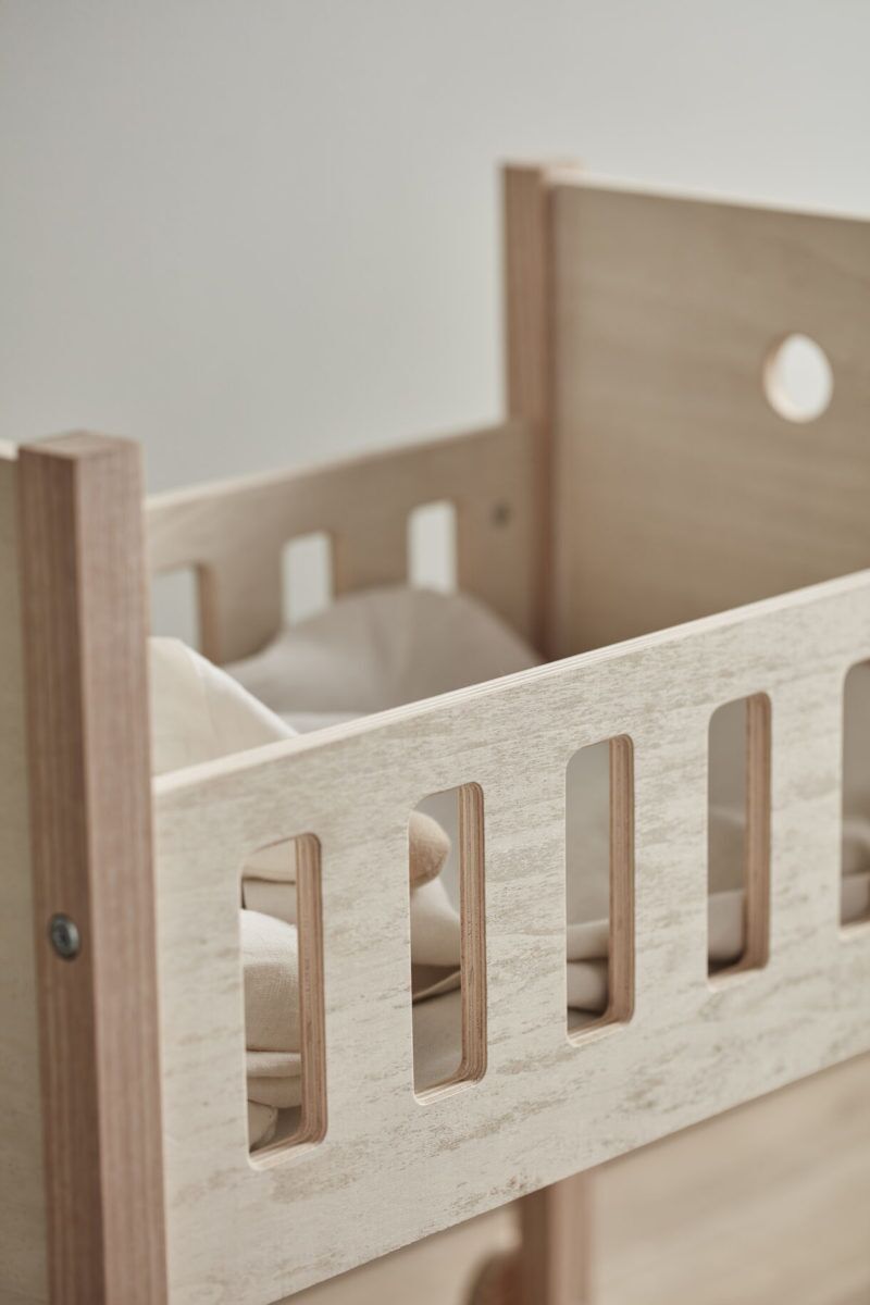 Kids Concept Puppenbett Natur, rollbar, inkl. Bettwäsche