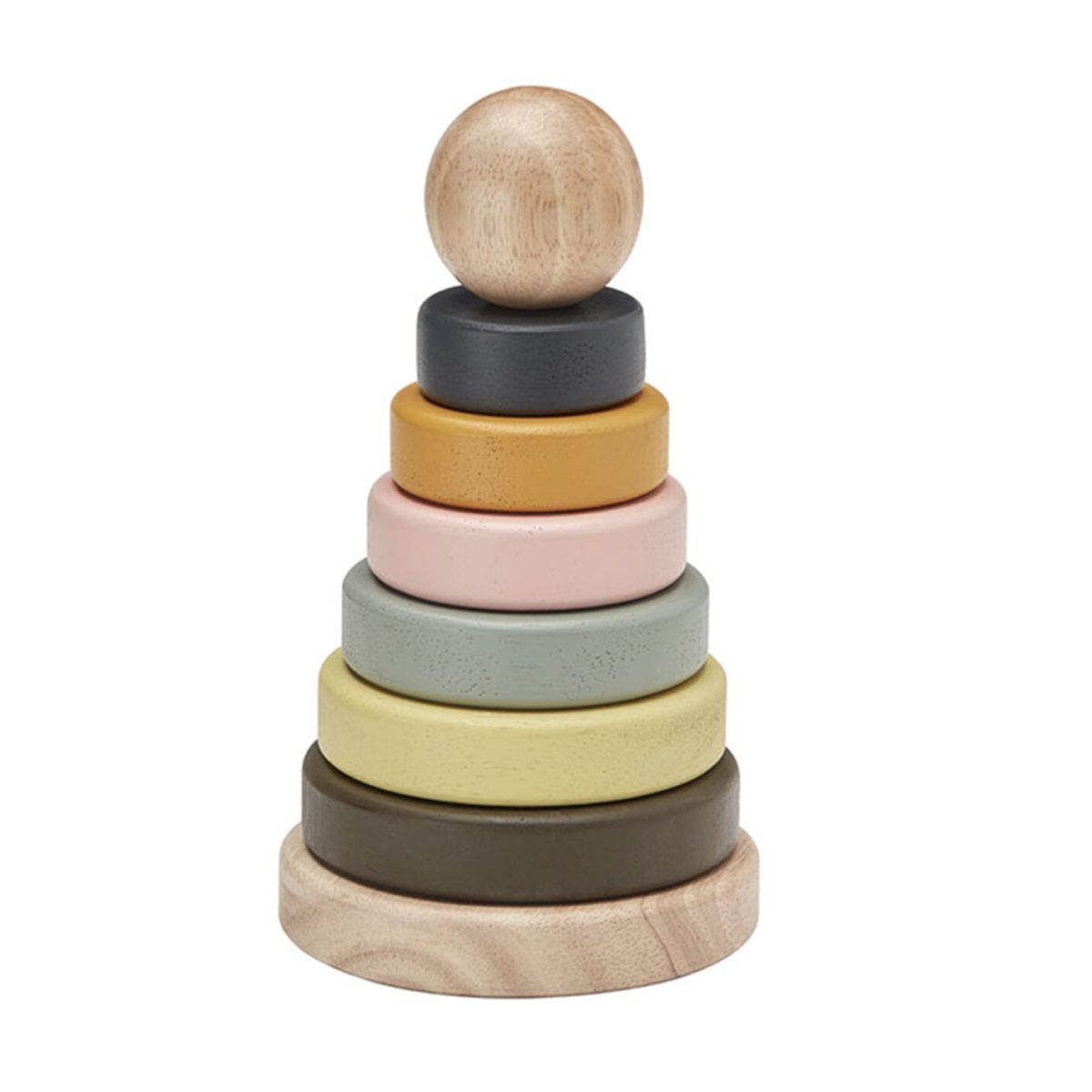 Als Ringturm aus Holz lädt dieses Motorikspielzeug Kinder ab 12 Monaten dazu ein, Ringe bewusst zu greifen, zu sortieren und nacheinander auf den Mittelstab zu stecken. Dabei entstehen erste Erfolgserlebnisse, wenn die Reihenfolge stimmt und der Turm langsam wächst.