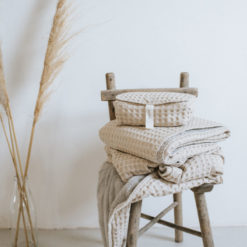 Waffelstoff von Koeka; wer kennt ihn nicht? Der waffelgeprägte Baumwollstoff ist eine coole Version der old school Retro-Waffeldecken aus den Siebzigern. Waffelprodukte sind unsere absoluten Bestseller und in einer so großen Farbauswahl erhältlich, dass es sicher eine Farbe gibt, die auch zu dir passt. Außerdem bringen wir regelmäßig eine neue Trendfarbe auf den Markt, also behaltet unsere Waffelartikel im Auge! Wusstest du, dass sich die Namen von Waffelprodukten auf das verwendete Futter beziehen? Amsterdam ist Waffel mit Frottee, Antwerpen ist Waffel mit Flanell oder Frottee und Oslo ist Waffel mit Teddy.