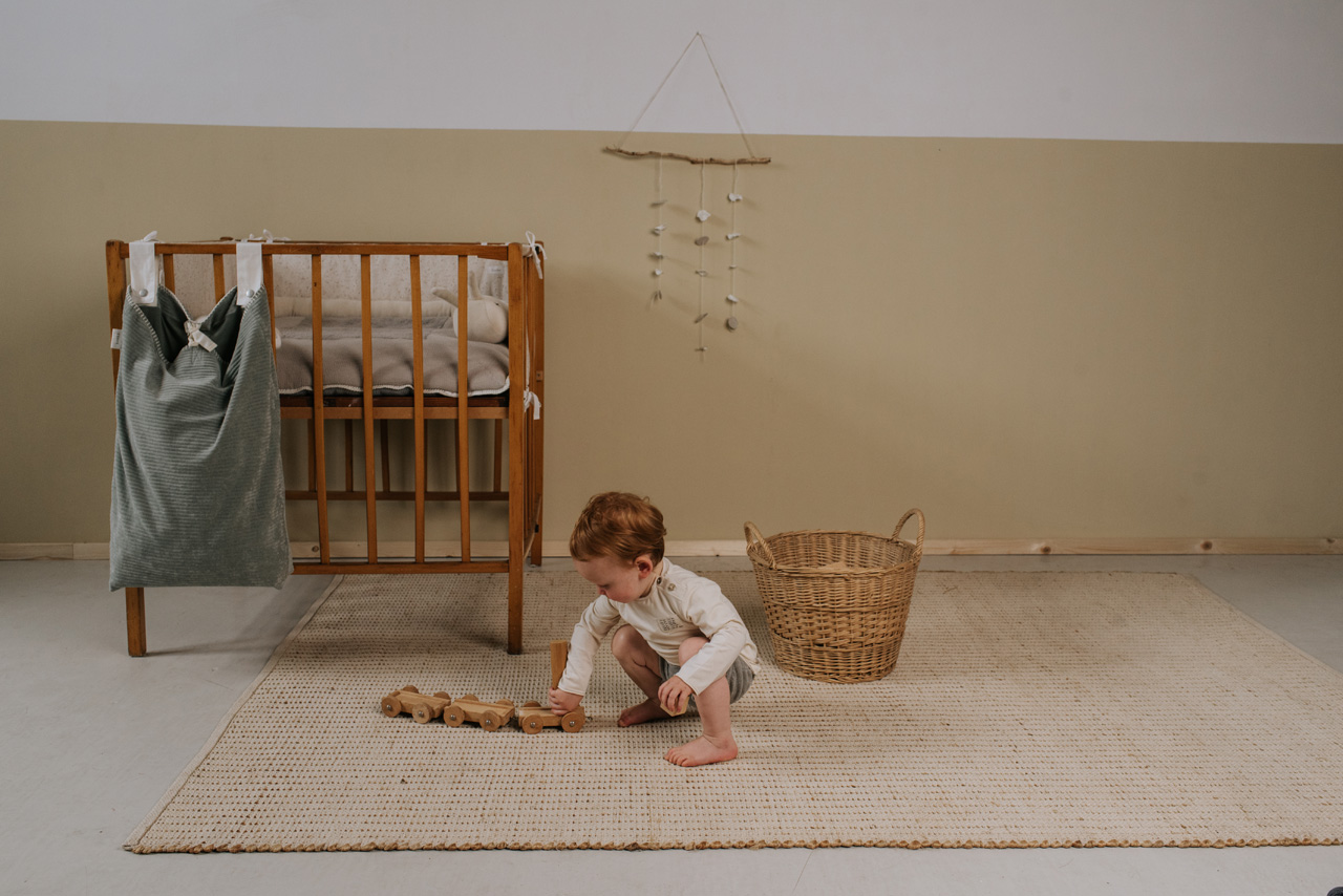 Koeka stellt Laufstallzubehör in verschiedenen Materialien, Stilen und Farben her, so dass jeder ein Produkt nach seinem Geschmack finden kann. Meistens steht der Laufstall im Wohnzimmer, daher ist es schön, wenn das Laufstallzubehör zur Einrichtung passt. In diesem praktischen koeka Spielzeugbeutel Vik können Sie alles aufbewahren, was Sie wollen. Spielzeug, Windeln, Kleider, Kuscheltiere; alles, was den Laufstall zu voll macht oder worüber Sie lieber nicht stolpern möchten, können Sie darin aufbewahren. Die Aufbewahrungstasche lässt sich mit zwei Schlaufen mit Druckknöpfen einfach am Laufstall oder am Bett befestigen. Man kann den Laufgitterbeutel oben mit einem in der Mitte angebrachten Band verschließen. Die Laufgittertasche hat einen verstärkten losen Boden, der vor dem Waschen entfernt werden muss.