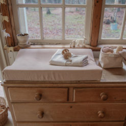 Der koeka Wickelauflagenbezug Oddi erleichtert nicht nur das Wickeln deines Babys, sondern vervollständigt auch das Styling deiner Kommode. Für den Komfort deines Babys und zur Erleichterung für dich ist ein Bezug für die Wickelauflage ein Muss, denn durch die glatte Oberfläche der Wickelauflage verwendest du sie normalerweise nicht ohne Bezug. Welchen Bezug du wählst, hängt natürlich von deinem Geschmack und der Einrichtung deines Babyzimmers ab. Da Wickelauflagenbezug häufig gewaschen wird, sind alle Wickelauflagenbezüge von Koeka waschmaschinentauglich. Ein Unfall kann schnell passieren, daher sind mehrere Bezüge kein überflüssiger Luxus! Magst du gerne Abwechslung? Wähle aus verschiedenen Stilen und gebe deiner Kommode jedes Mal einen anderen Look. Überprüfe die Maße deiner Wickelauflage, um eine schöne, passende Wickelauflage zu finden. Dieser Bezug misst 45×73 cm und passt perfekt zu Koekas “Time to Change” Wickelauflage. Die Befestigung des Bezugs ist ähnlich wie bei einem Spannbetttuch. Du kannst ihn einfach um die Wickelauflage ziehen, und der Bezug zieht sich durch das Gummiband an der Unterseite selbst fest.