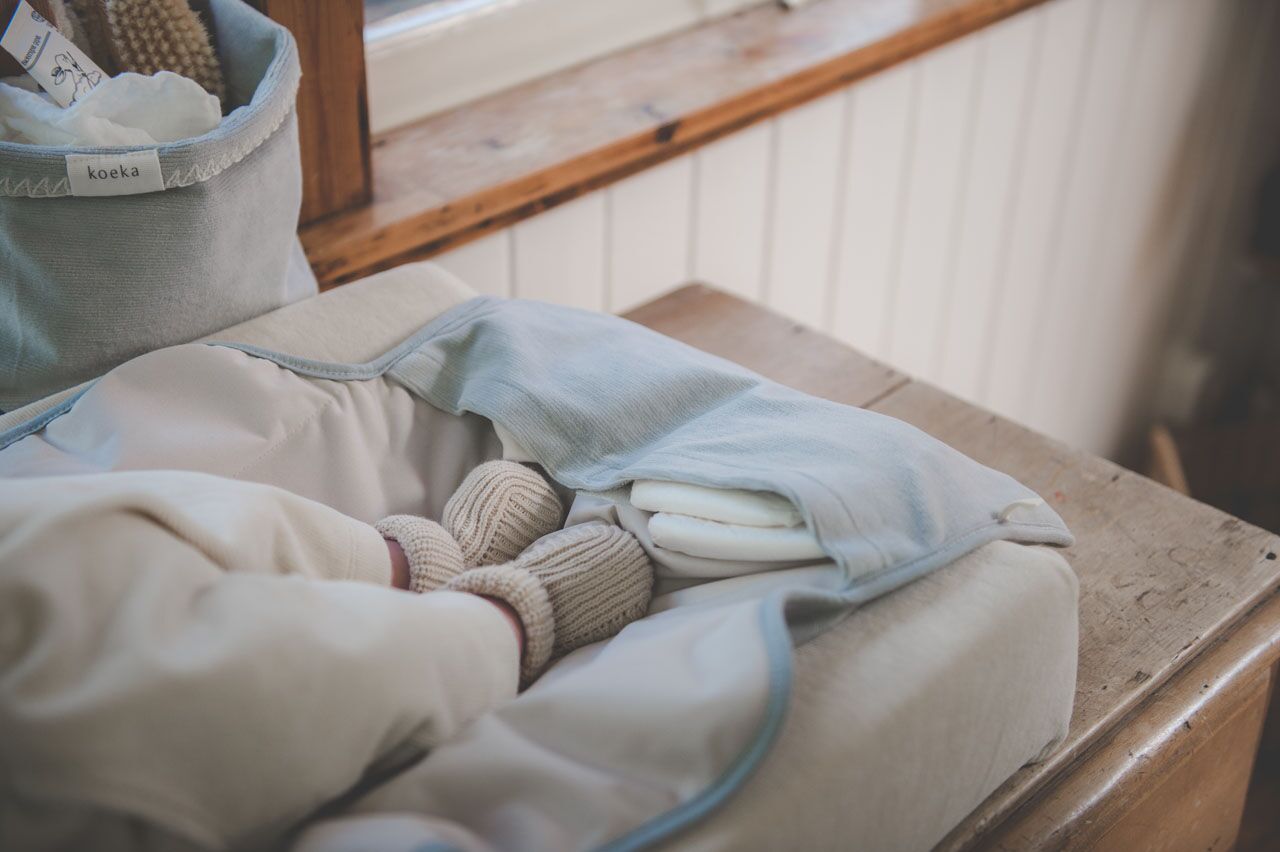 Die Wickelunterlage passt perfekt zu den anderen Artikeln, der koeka Oddi Kollektion (hier klicken).