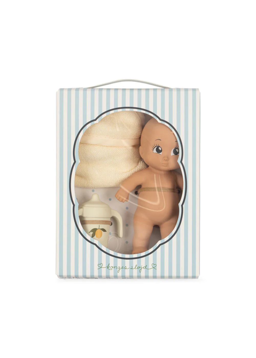 - Set: Badepuppe „Niko“, Trinkflasche, Baumwollhandtuch