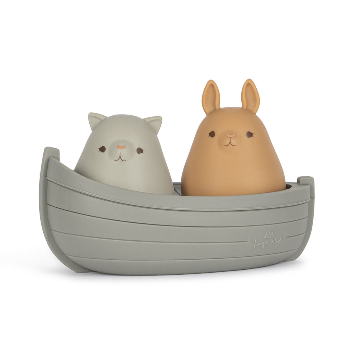 Niedliches Konges Sløjd Badespielzeug in Form eines Bootes mit charmanten Passagieren aus 100% BPA-freiem Silikon.