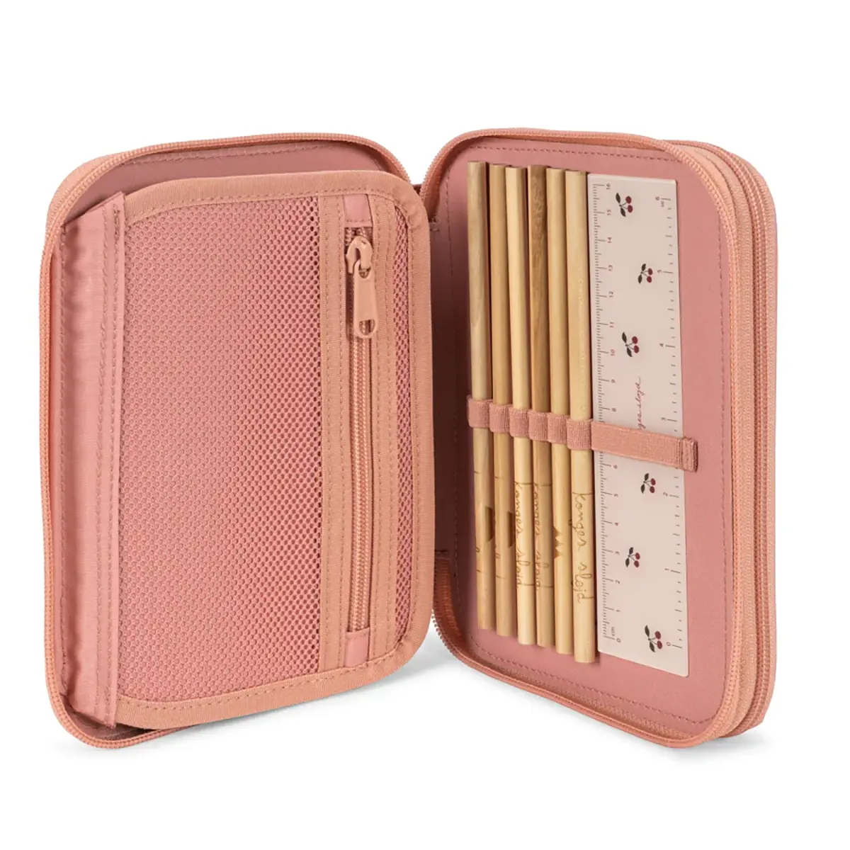 Diese Federmäppchen ist aus 100% recyceltem Polyester gefertigt und unterstreicht damit das Engagement von Konges Sløjd für Nachhaltigkeit und Umweltschutz. Das Material ist nach OEKO-TEX® STANDARD 100, Klasse 2 zertifiziert, was garantiert, dass es frei von schädlichen Substanzen ist und sicher für den täglichen Gebrauch. Das typische Konges Sløjd Design mit liebevollen Details macht diese Federtasche nicht nur funktional, sondern auch zu einem echten Hingucker.