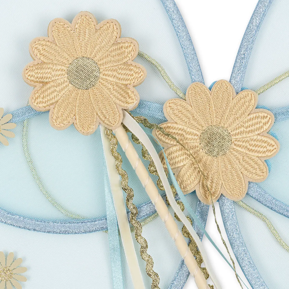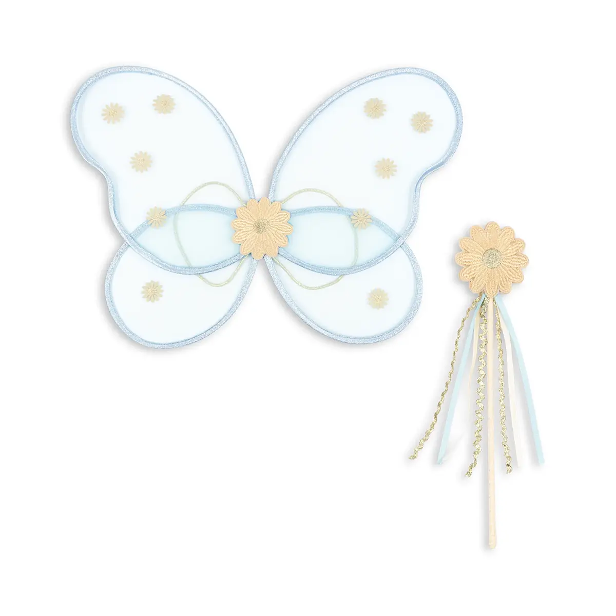 - Materialien: Flügel aus Polyester und Metall, Zauberstab aus Holz, PET und Polyester.