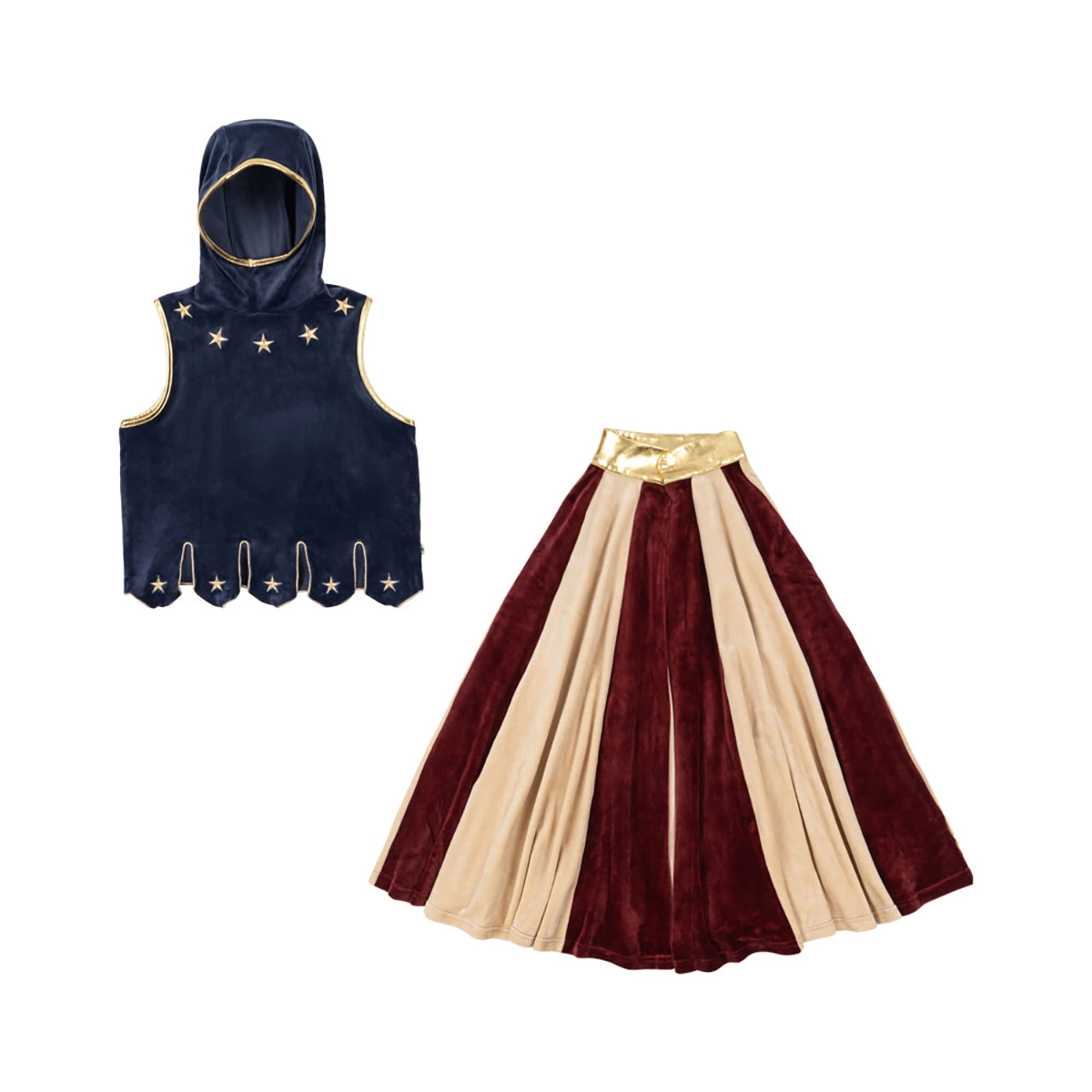 Der Traum eines jeden kleinen Helden wird wahr – mit dem Konges Sløjd Kinderkostüm-Set „Ritter“! Mit diesem zauberhaften Kostüm verwandelt sich dein Kind in einen mutigen Ritter, bereit, jedes Abenteuer zu bestehen. Das Set, gefertigt aus weichem Samt, umfasst einen Umhang und eine Rüstung, die so gestaltet sind, dass sich dein Kind frei bewegen und das Spiel in vollen Zügen genießen kann. Perfekt für Rollenspiele, die Fantasie anregen und das Selbstbewusstsein stärken!
