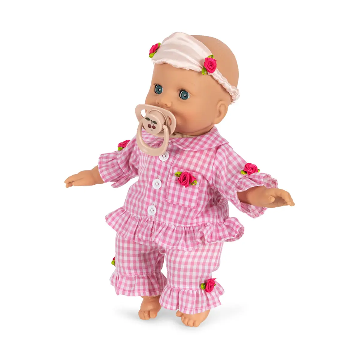 - Hochwertige Materialien: Puppe aus Vinyl, Kleidung aus Bio-Baumwolle, Füllung aus recyceltem Polyester.