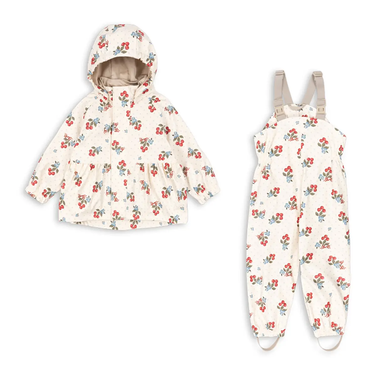 Wenn der Regen sanft auf den Boden trommelt und Pfützen zum Hineinspringen einladen, sorgt das Konges Sløjd Regenset dafür, dass dein Kind warm und trocken bleibt. Die durchdachten Details machen es zu einem unverzichtbaren Begleiter für jedes Abenteuer bei Wind und Wetter.