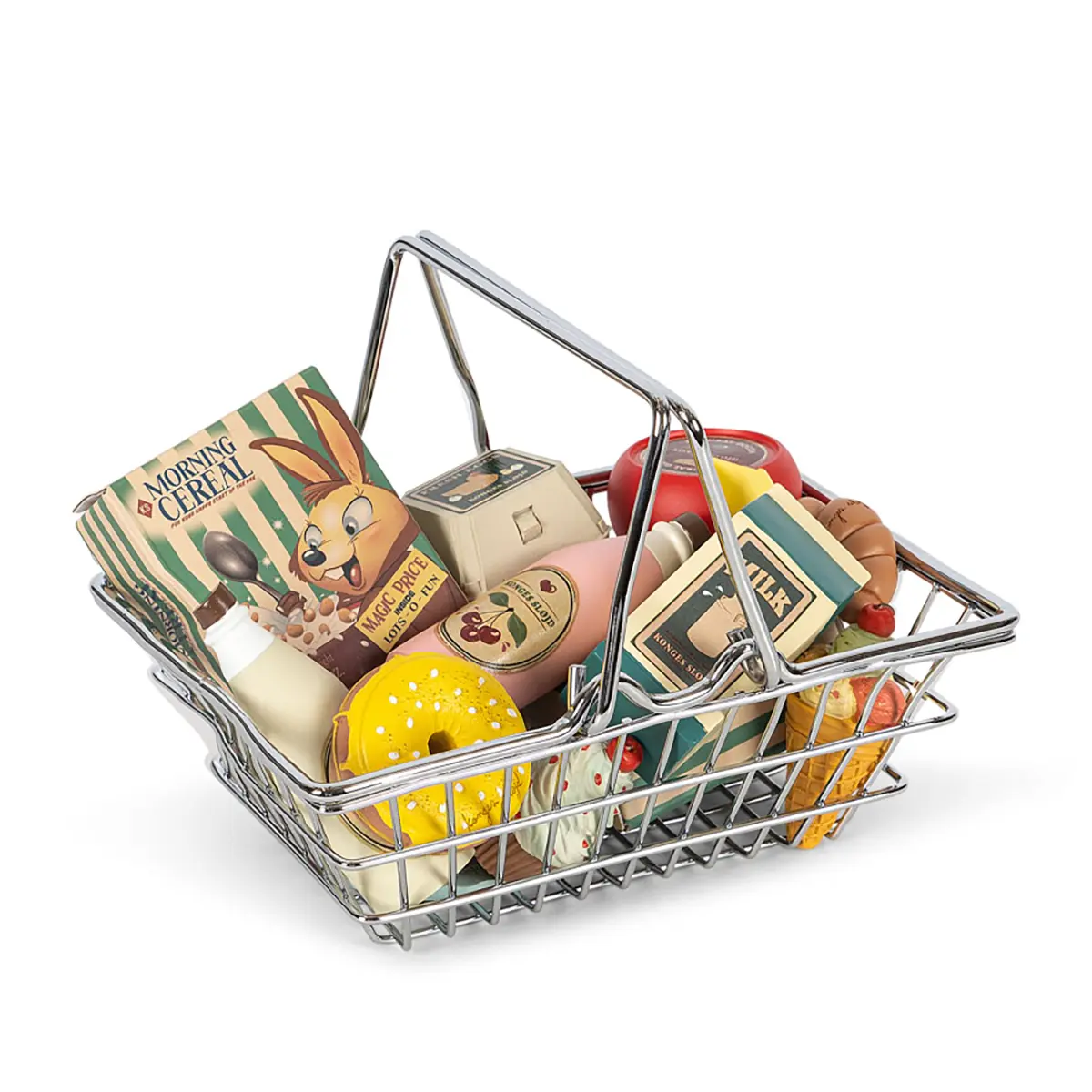 Konges Sløjd Supermarkt-Set „Mini Market“ – Rollenspiel mit Spiel-Lebensmitteln & Metallkorb