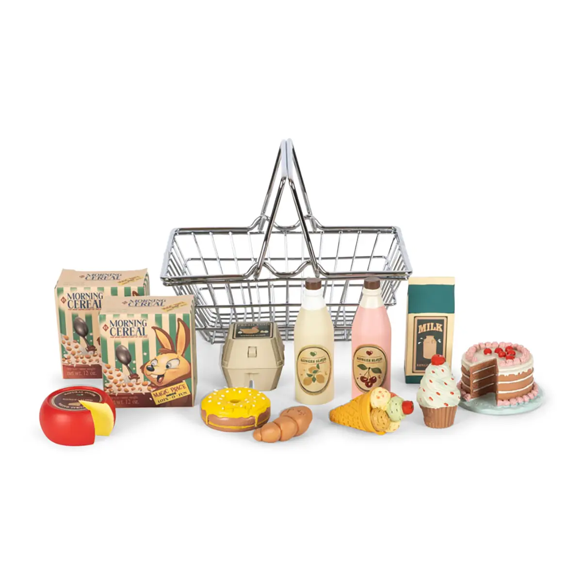 Ob „Milch“ für den Morgen, „Cornflakes“ für das Frühstück oder ein Stück „Torte“ für die Kaffeepause – das Set bietet abwechslungsreiche Requisiten für stundenlanges, freies Spielen. Kinder üben dabei ganz nebenbei soziale Abläufe, Sprache und erste Zahlenbegriffe: auswählen, benennen, „bezahlen“, sortieren. Der Metallkorb fühlt sich „echt“ an, ist leicht zu tragen und macht das Hin- und Herräumen zu einem spannenden Teil des Spiels.