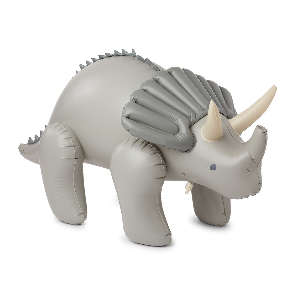 Der große Konges Sløjd Wassersprinkler in Form eines Dinosauriers bringt Riesenspaß für groß und klein. Der Dino-Sprinkler aus strapazierfähigem, phthalatfreiem PVC kann ganz einfach einen einem Standardgartenschlauch (nicht im Lieferumfang enthalten) angeschlossen werden. Das Wasser sprüht aus dem Horn des Triceratops.