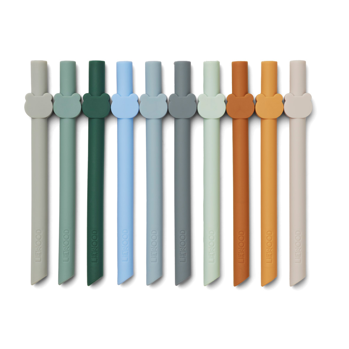 Liewood Badu Strohhalme „Blue wave multi mix“ aus Silikon, 10er-Set