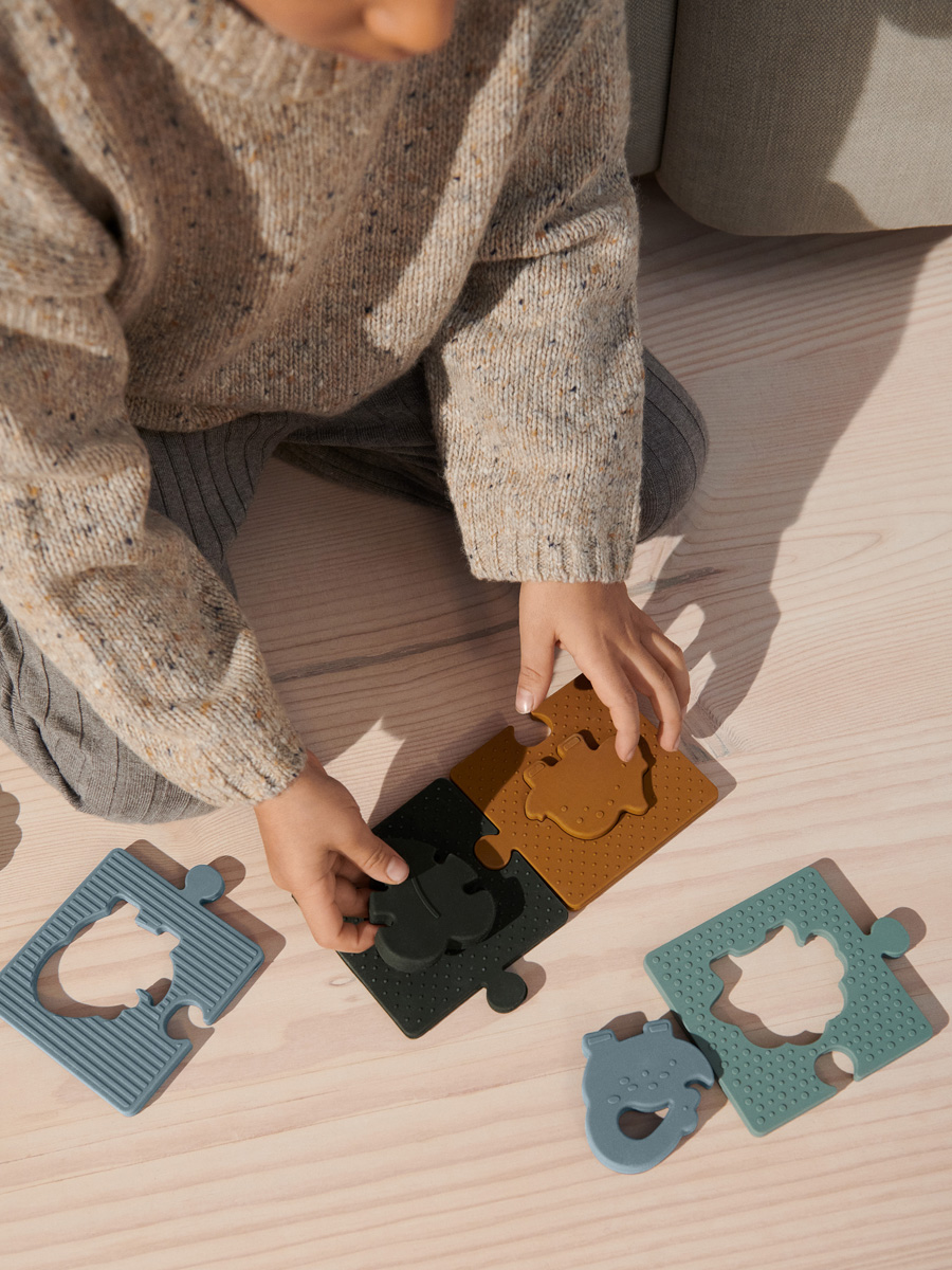 Das Liewood Bodil Puzzle wurde für kleine Kinder entwickelt, um die Formerkennung zu unterstützen und motorische Fähigkeiten zu entwickeln. Erhältlich in den klassischen Liewood-Tieren und Lieblingsdinos.