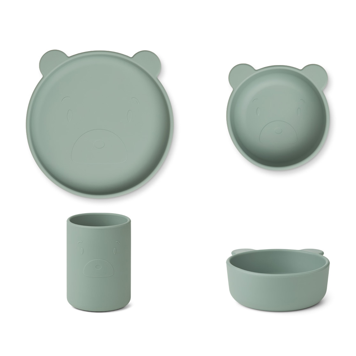 Liewood Cyrus Silikon Geschirr-Set Junior „Mr. Bear peppermint“, 3er-Set