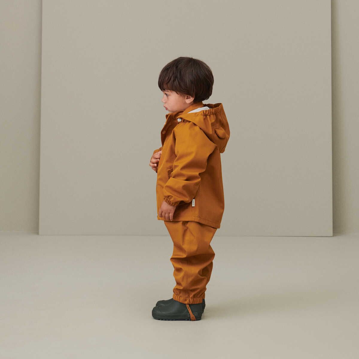 Atmungsaktive Liewood Dakota Regenbekleidung für Kinder von ca. 1-4 Jahren. Das Softshell Regenset besteht aus einer Regenjacke und einer Regenhose. Hergestellt aus 100% recyceltem Oeko-Tex-Polyester.