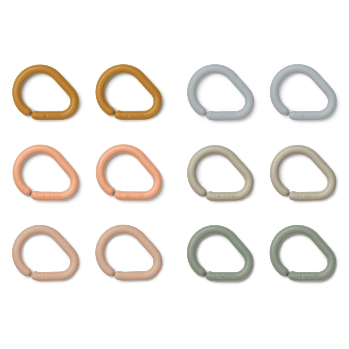 Wie der Name schon sagt, haben die Liewood Edmund Multi Ringe unendlich viele Funktionen. Verwende die Ringe, zum Aufhängen von Spielzeug am Spieltisch oder im Kinderwagen. Füge mehrere Ringe zusammen, um Spielzeug näher an das Baby zu bringen, oder verwende sie als Rassel- oder Beißringe.