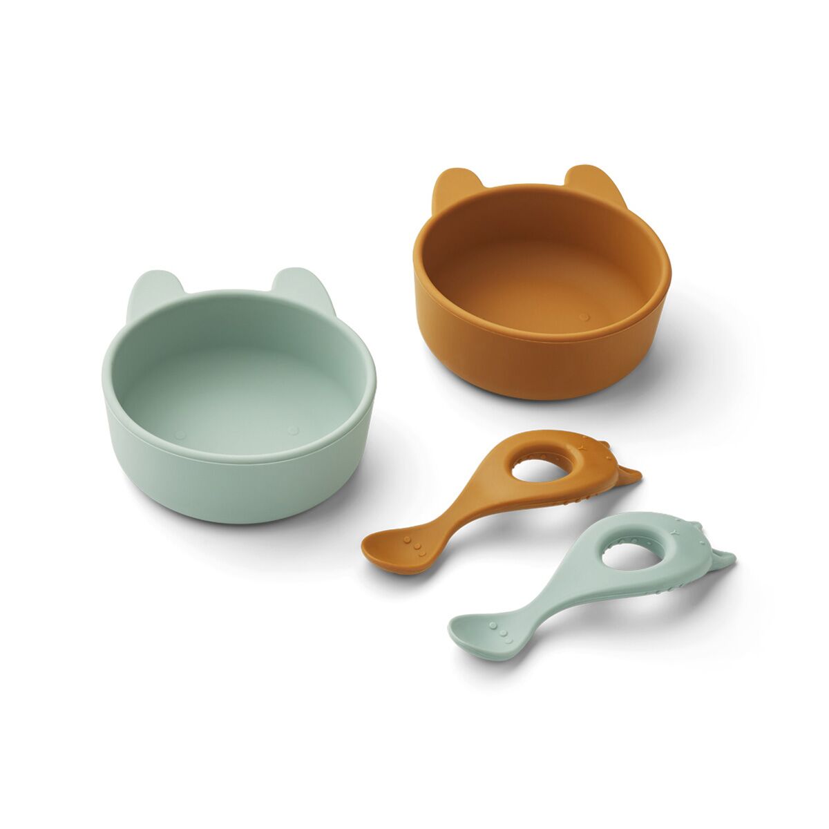 Das Liewood Evan Silikon Schlüssel-Löffel-Set ist wie gemacht für dein Baby – der Liva Silikonlöffel ist perfekt, wenn dein Baby anfängt Porridge & Co. zu essen und die Iggy Schale sorgt mit ihren niedlichen Tierdetails garantiert für mehr Spaß beim Essen.