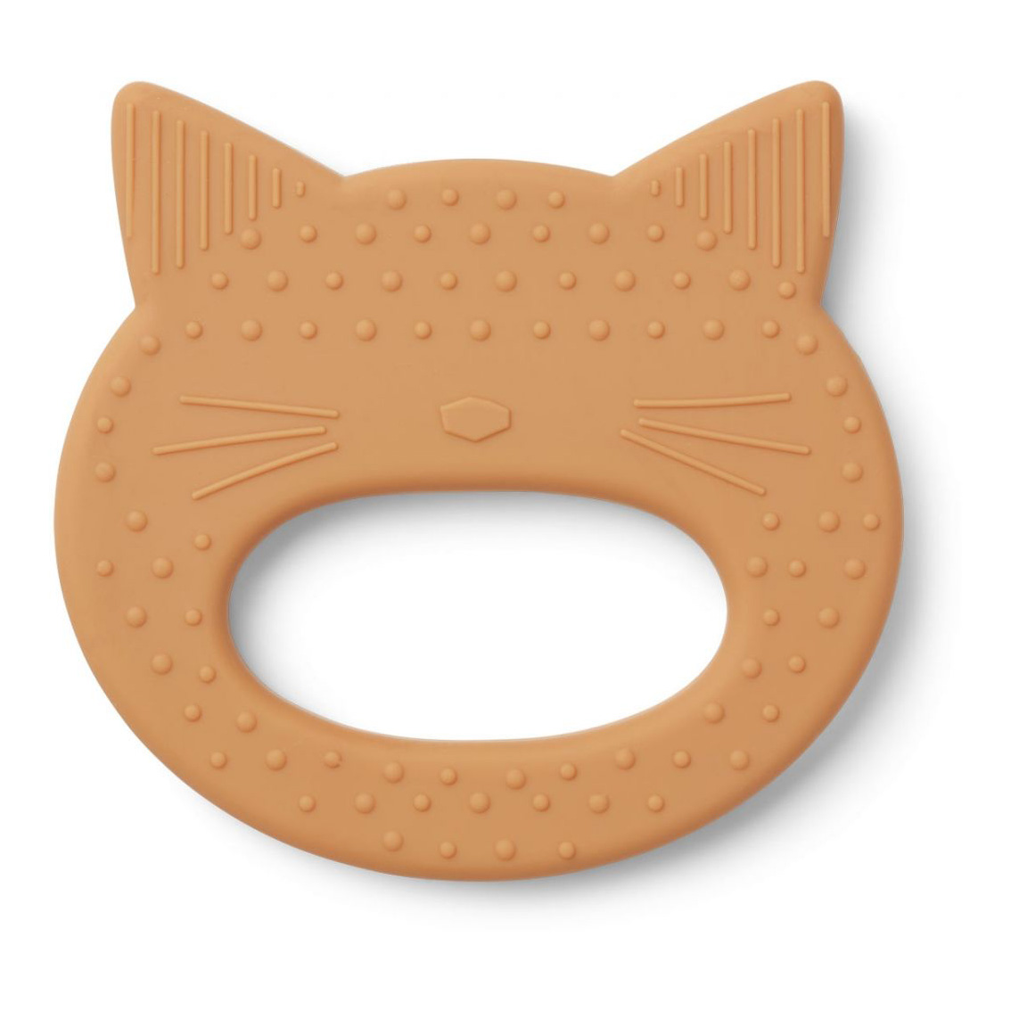 Der Liewood Gemma Beißring „Cat mustard“ aus 100% BPA-freiem Silikon hat unterschiedliche Texturen, die beruhigend wirken und den Ausbruch der neuen Zähne Ihres Babys stimulieren.