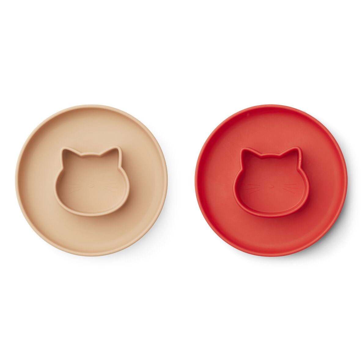 Liewood Gordon 2-in-1 Kinderteller mit Schalen „Cat apple red / tuscany rose mix“