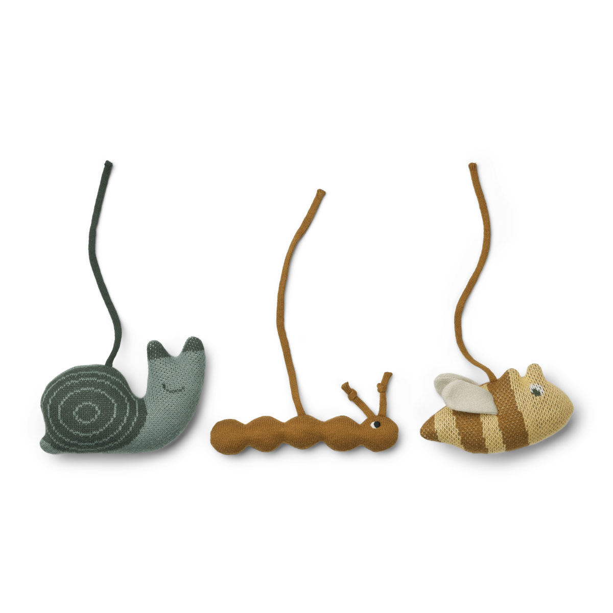 Unterhalte dein Baby mit dem niedlichen Liewood Grace Spielbogen-Anhänger – drei gestrickte Tiere, die die Hand-Augen-Koordination und das Raumverständnis deines Babys trainieren.