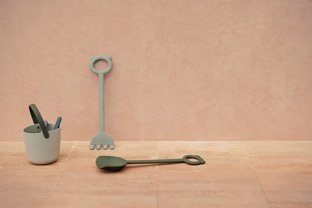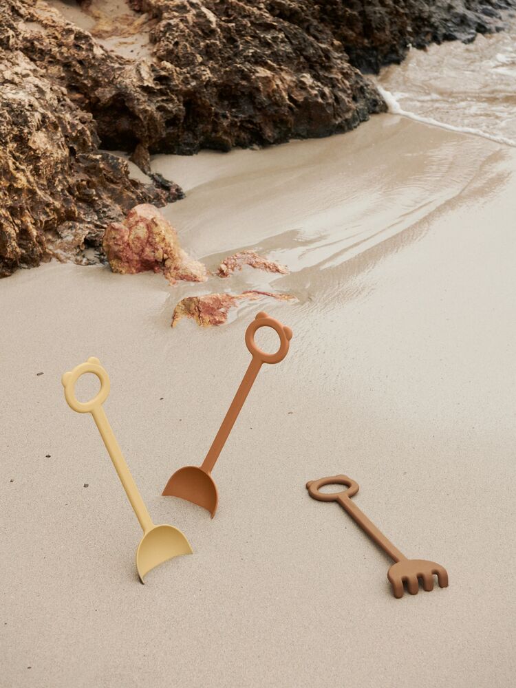 Das hochwertige Schaufel und Harken-Set passt hervorragend zu den anderen Artikeln des Liewood Strandspielzeugs.