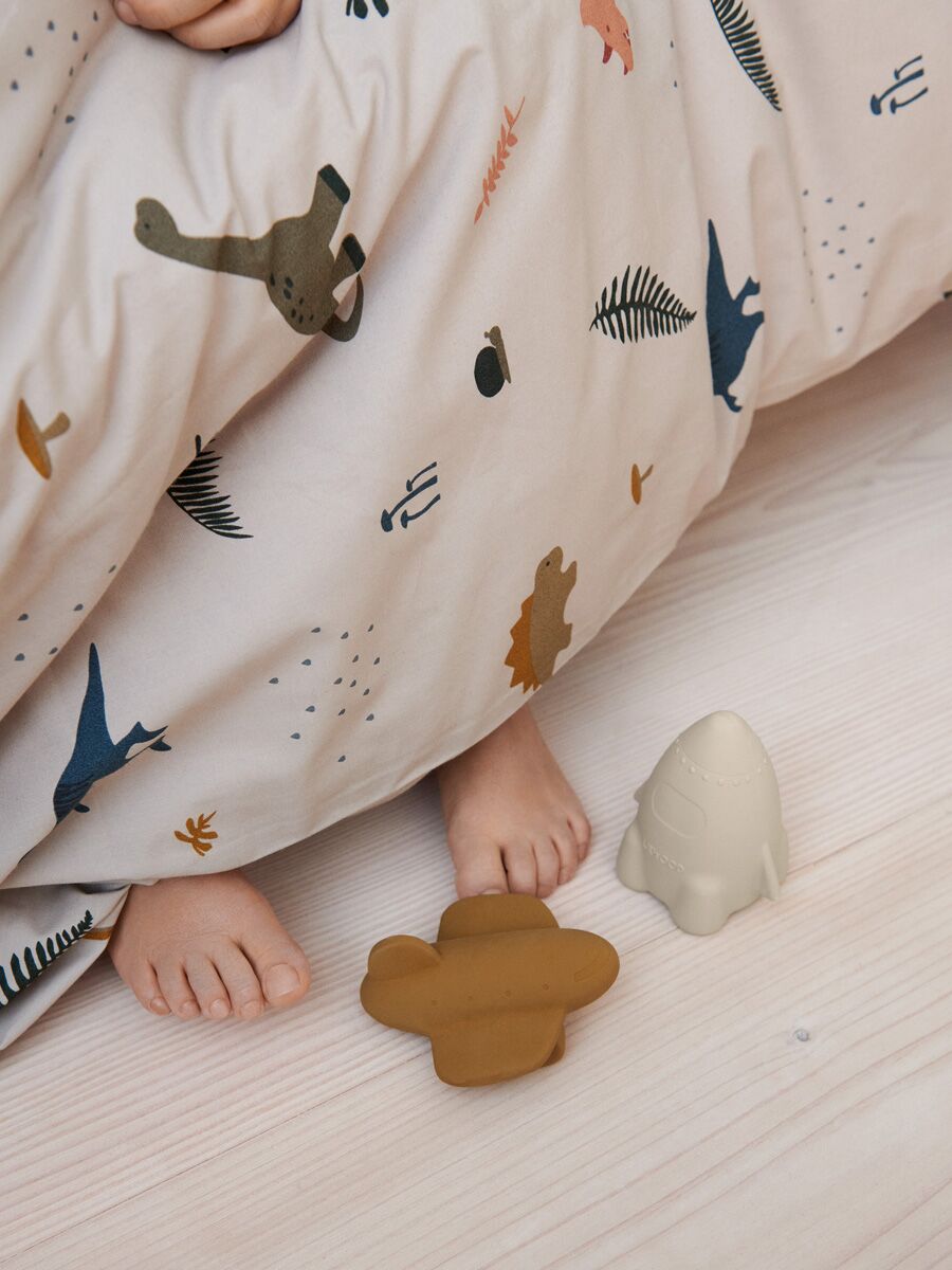 Das Liewood Jacob Spielset enthält eine Rakete, ein Flugzeug und ein Auto aus 100% Naturkautschuk, das stundenlange Unterhaltung in der Badewanne garantiert oder auch einfach nur als Spielzeug im Kinderzimmer verwendet werden kann.