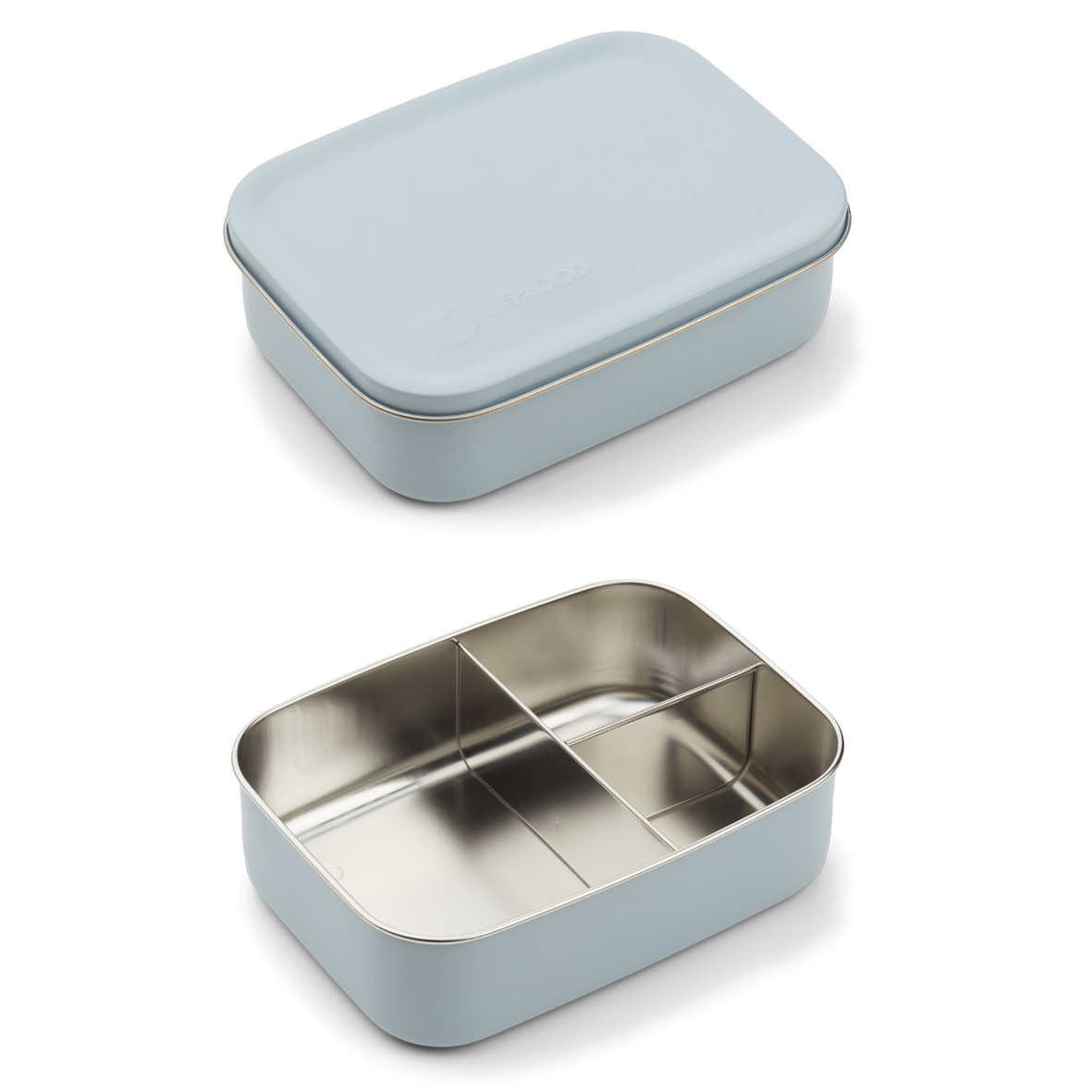 Leichte Liewood Jimmy Lunchbox hat eine pulverbeschichtete Außenfläche, die eine schöne und glatte Haptik verleiht und sie hat drei praktische Fächer.