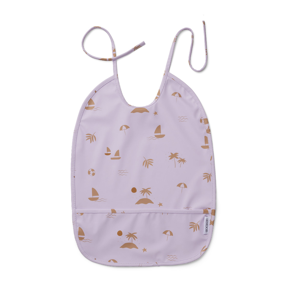 Süßestes, praktisches und wasserdichtes Liewood Lai Lätzchen „Seaside light lavender“. Es ist leicht und angenehm zu tragen und verfügt über eine Auffangtasche am Boden, um den Boden und die Kleidung noch besser zu schützen. Das Lätzchen kann leicht abgewischt werden, kann aber auch in der Waschmaschine gewaschen werden.