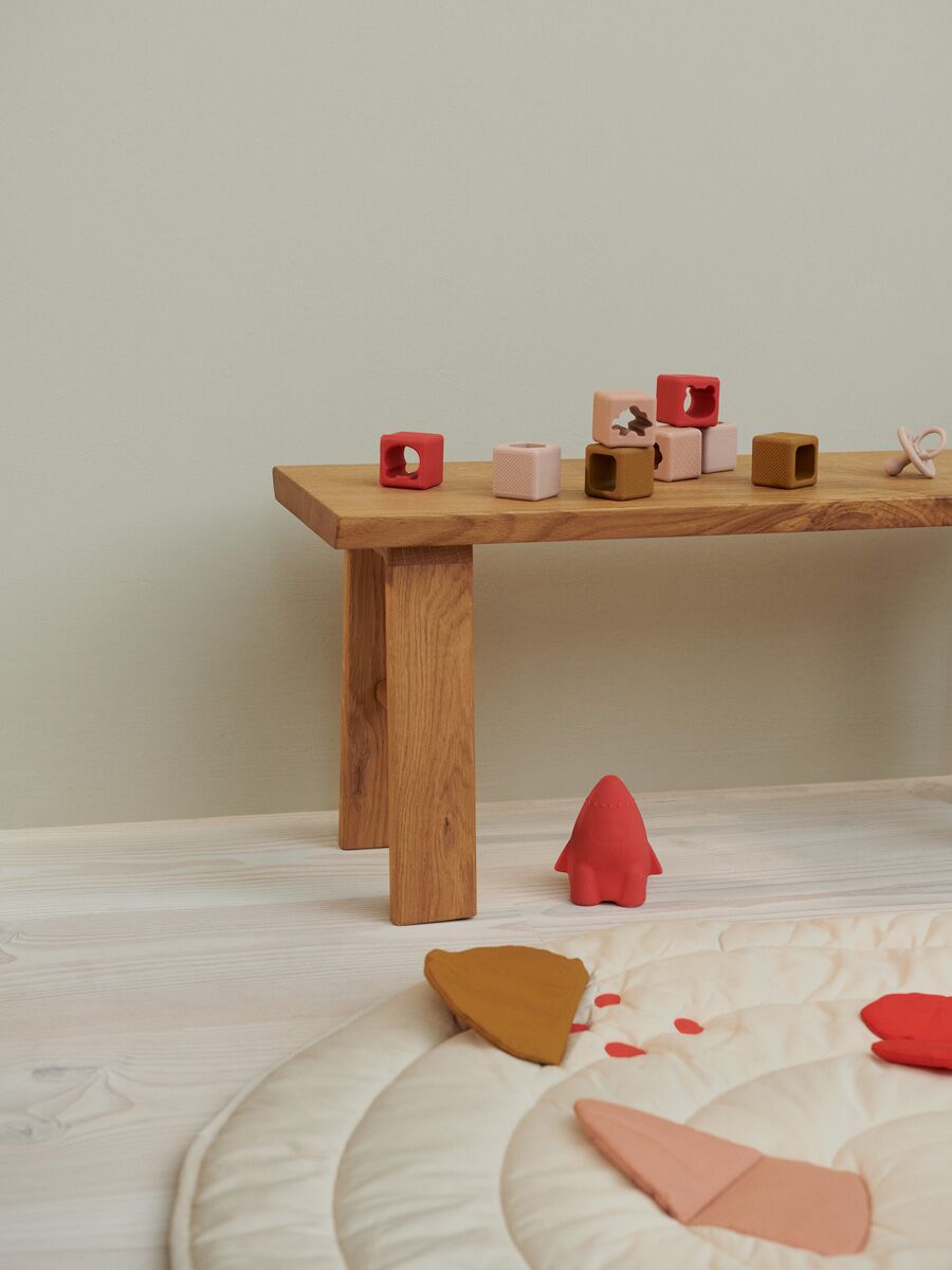 Das Organisieren und Stapeln von Objekten ist ein natürlicher Bestandteil der Entwicklung eines Kindes. Mit den Liewood Loren Stapelbausteinen kann dein Kind balancierende Gegenstände übereinander stapel und testen, was zu was passt.