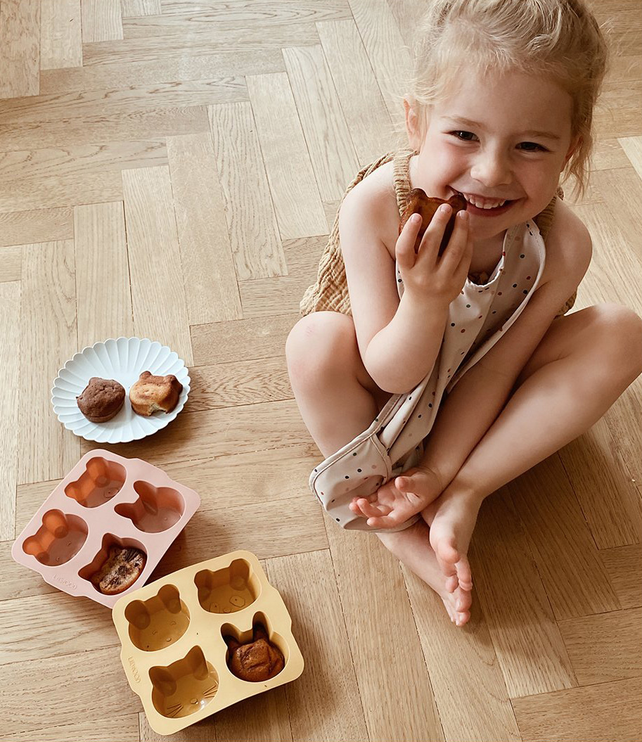 Backen Sie Ihren Lieblingskuchen mit den neuen Liewood Mariam Kuchenformen aus Silikon. Kommt in einem praktischen 2er-Pack, die Kuchen haben eine tolle Größe für Kinder und sind wie Bär, Panda, Katze und Kaninchen geformt.