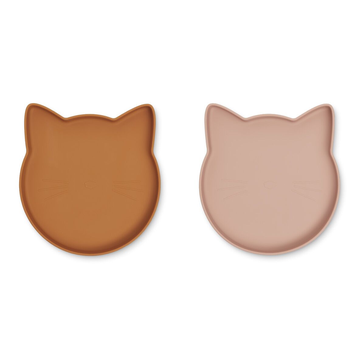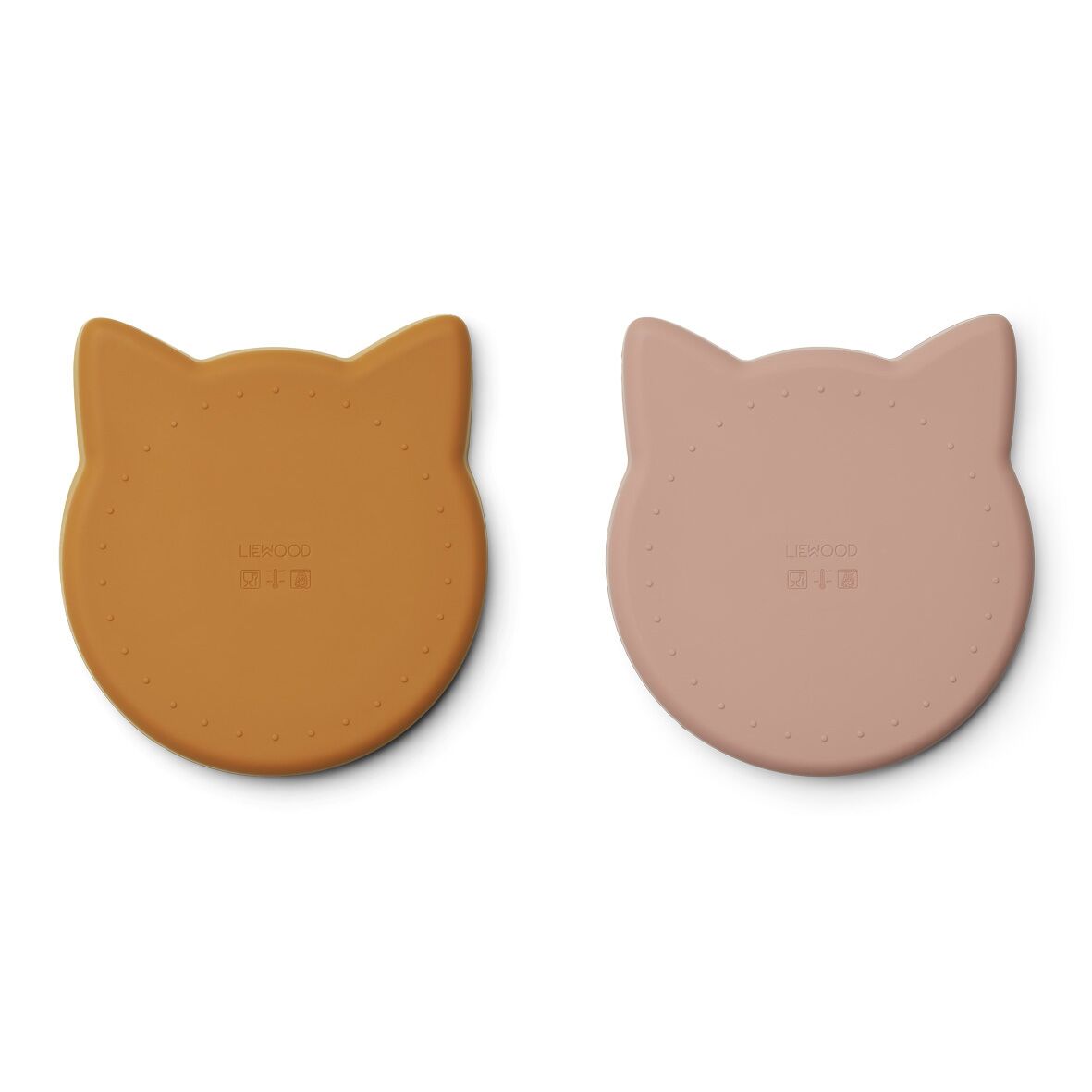 Liewood Marty Teller „Cat mustard / dark rose mix“, Silikon Kinderteller, 2er-Set