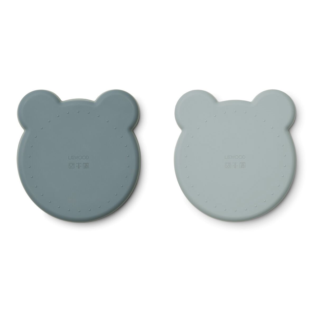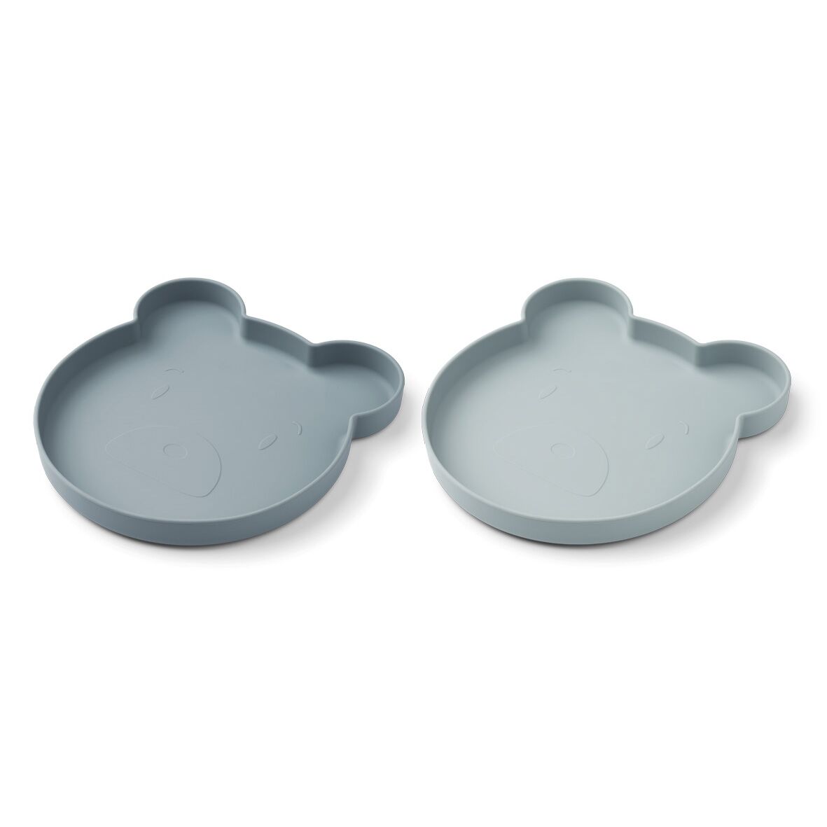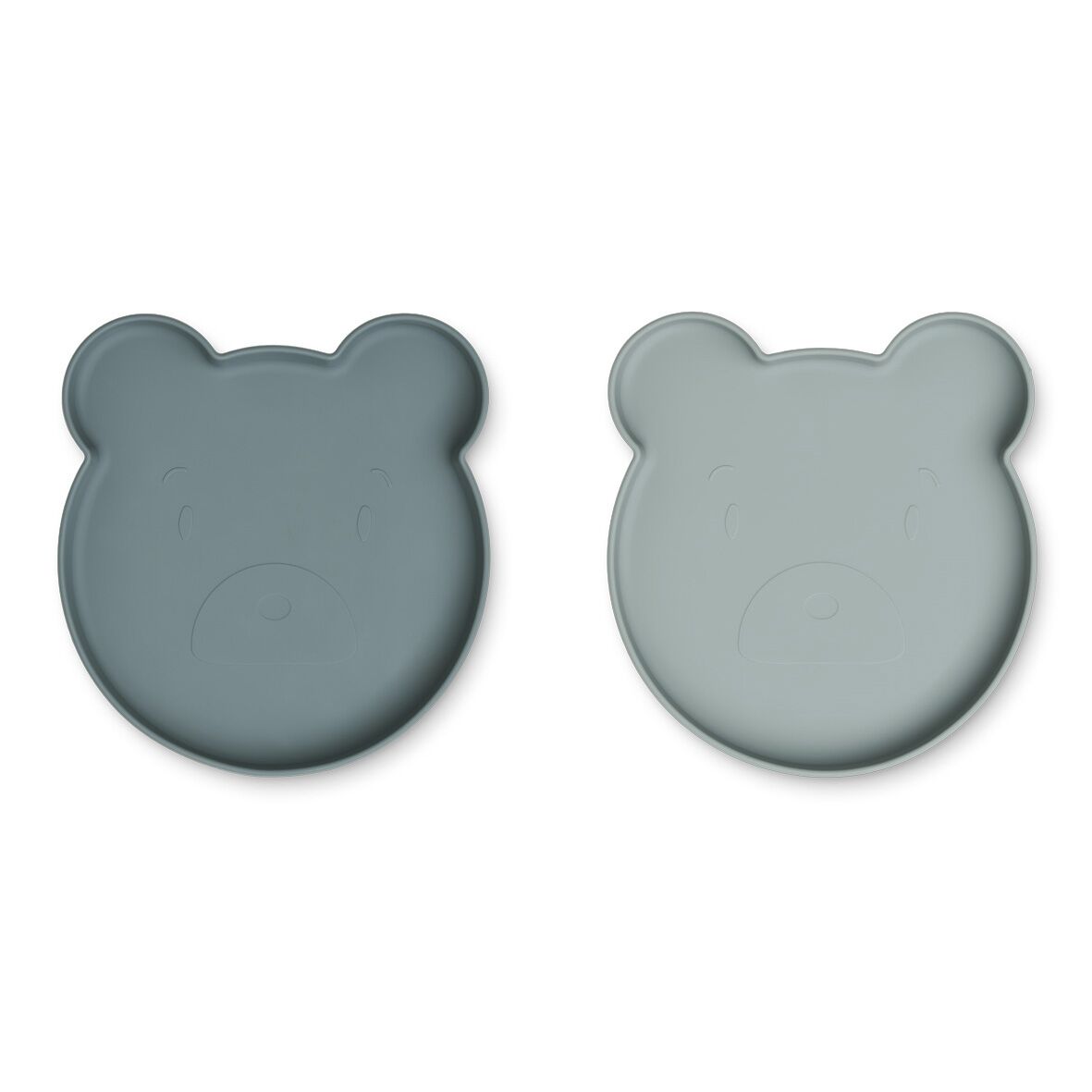 Liewood Marty Teller „Mr. Bear blue mix“, Silikon Kinderteller, 2er-Set