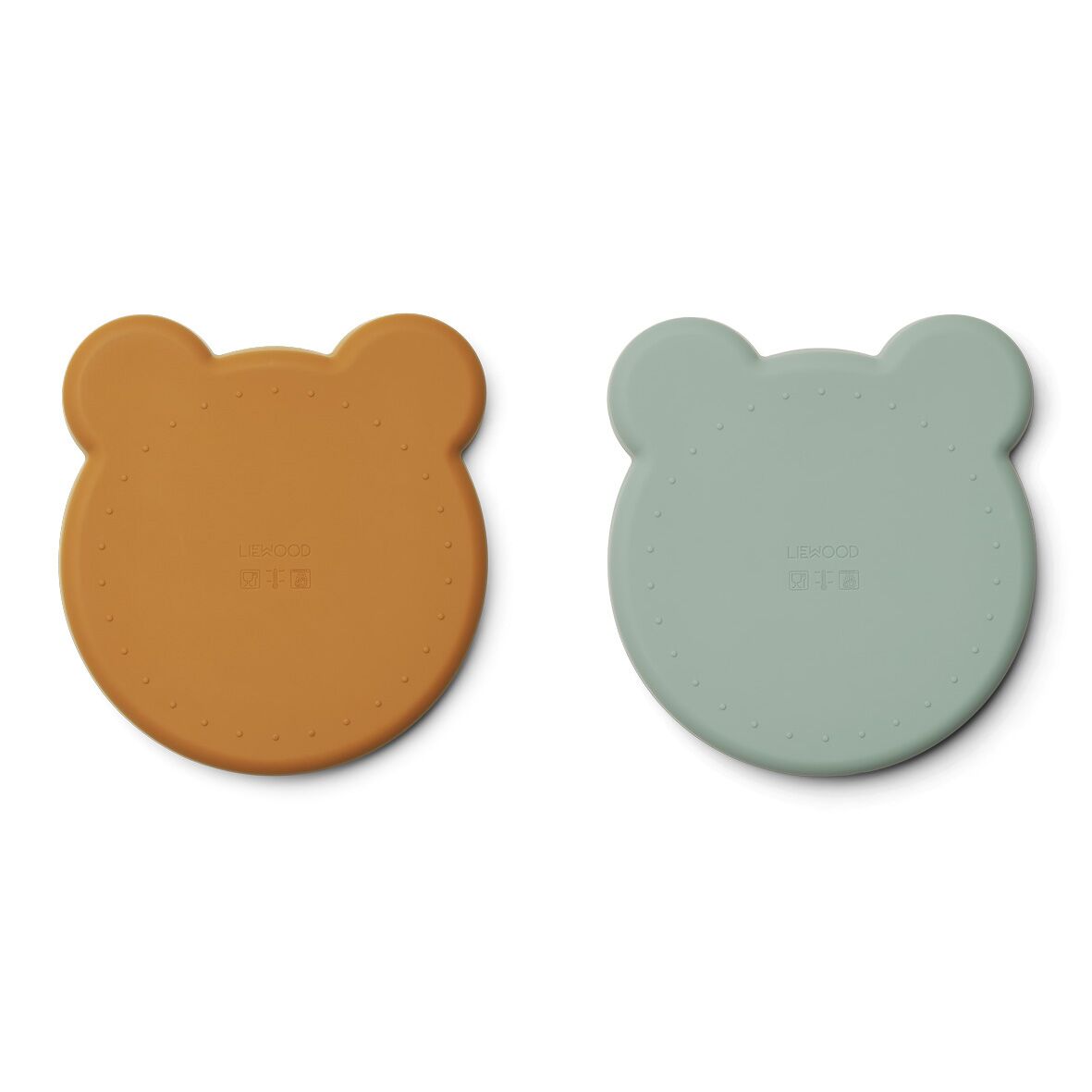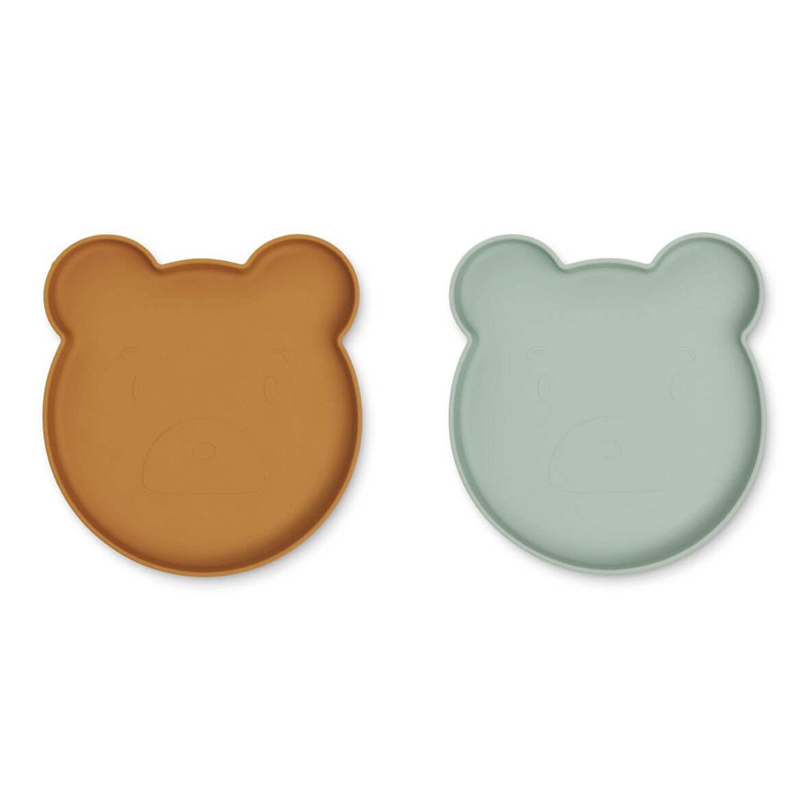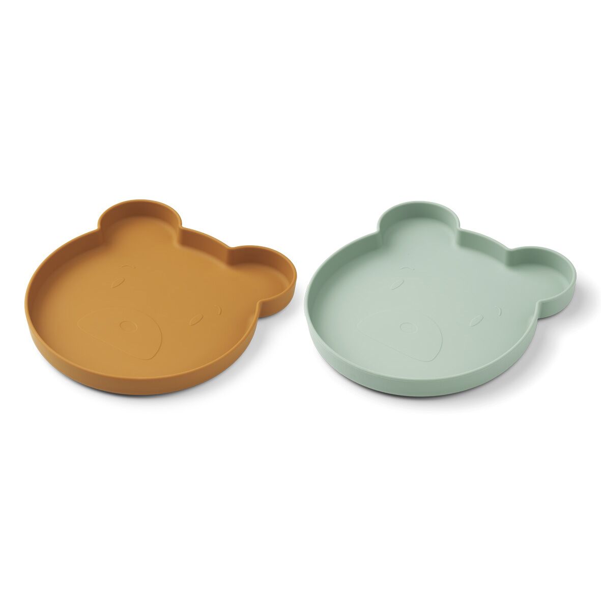 Liewood Marty Teller „Mr. Bear mustard / peppermint mix“, Silikon Kinderteller, 2er-Set